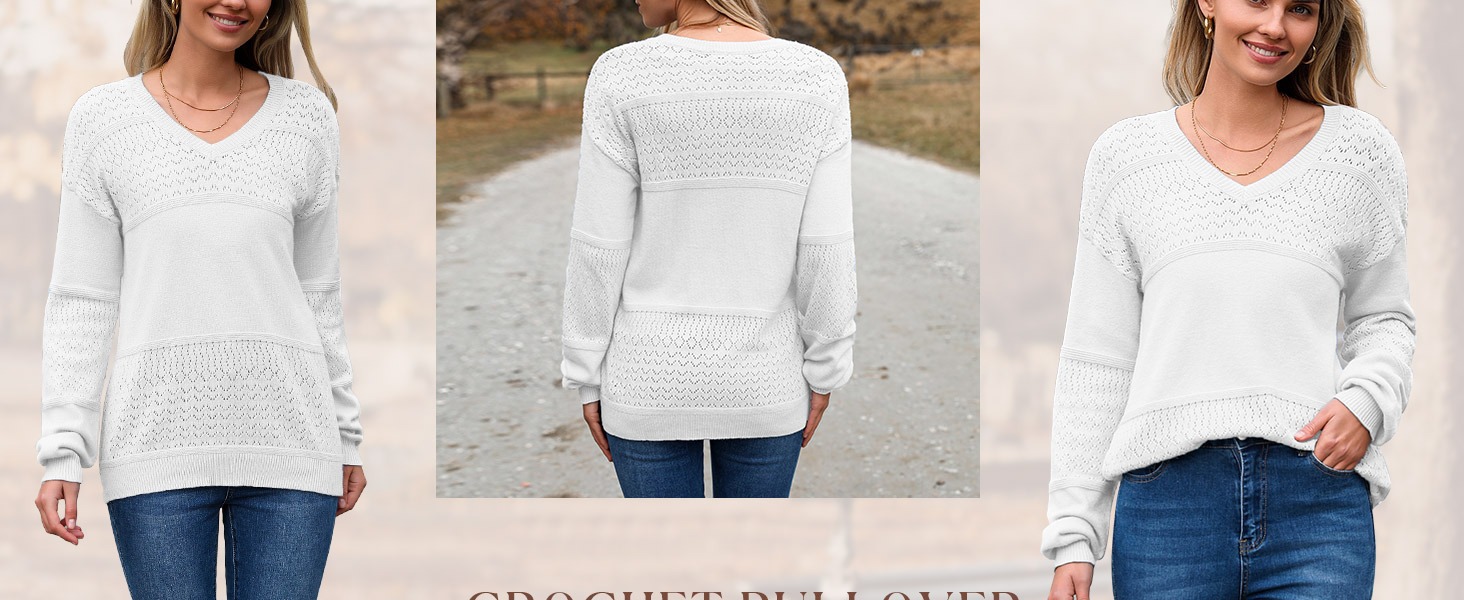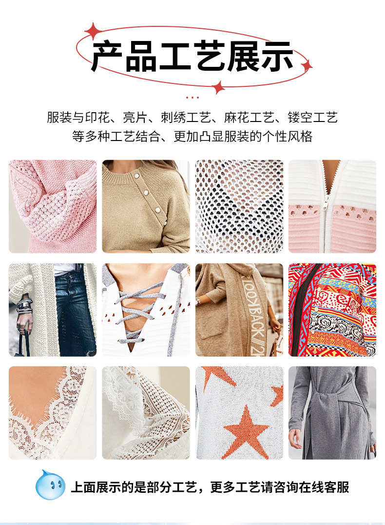 商品属性 [111] Sweater [222] Knitwear [333] Women's Knit Sweater [上市年份/季节] 2025年春季 [主要下游销售地区1] 欧美 [主要下游销售地区2] 欧美 [厚薄] 中等 [图案] 纯色 [工艺] 针织 [是否跨境货源] 是 [款式] 套头 [流行元素] 勾花 [版型] 宽松型 [穿着方式] 套头 [组合形式] 单件 [衣长] 普通款(50cm<衣长≤65cm) [袖型] 常规袖 [袖长] 长袖 [跨境风格类型] 气质优雅 [门襟] 无扣 [面料名称] 化纤混纺 [领型] V字领 [风格] 性感风 [风格类型] 私服名媛