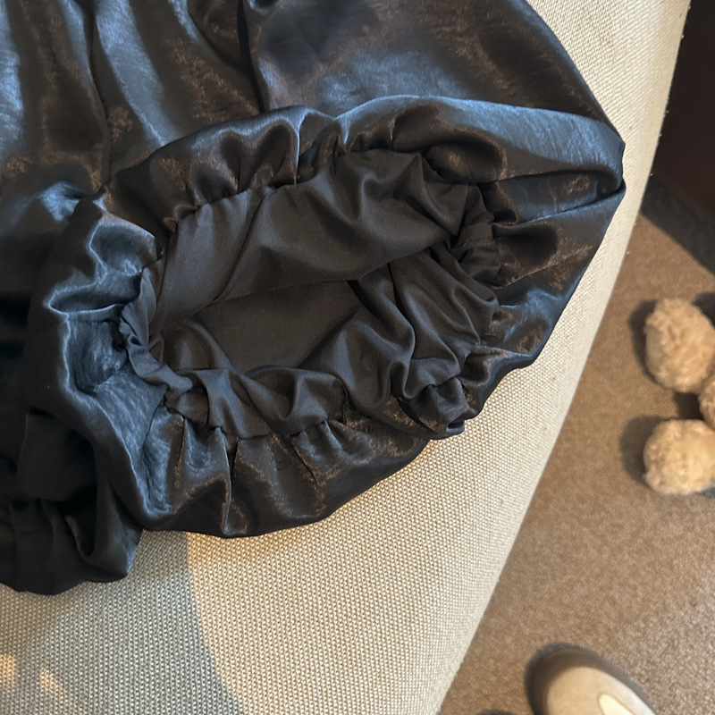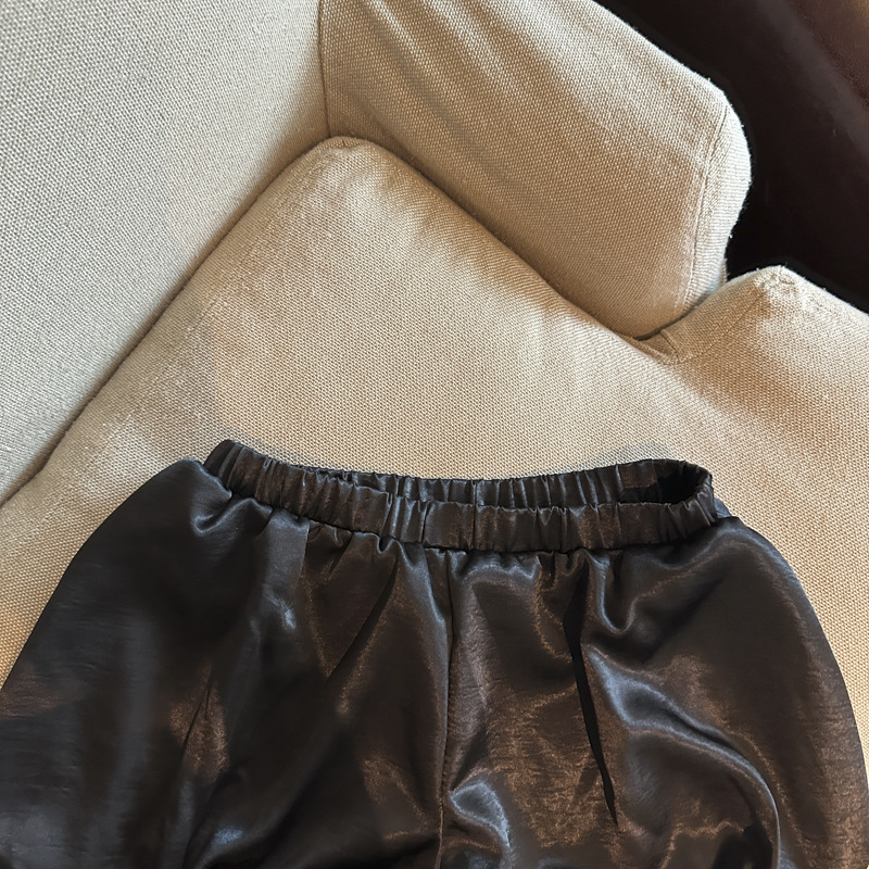 商品属性 [上市年份/季节] 2025夏季 [主要下游销售地区1] 东南亚 [主要下游销售地区2] 欧美 [主面料成分] 涤纶(聚酯纤维) [主面料成分含量] 70%(含)-80%(不含) [厚薄] 常规 [工艺] 抽褶 [弹力] 无弹 [是否跨境货源] 是 [款式] 基本款 [流行元素] 抽绳 [腰型] 高腰 [裤型] 直筒裤 [裤长] 三分裤 [跨境风格类型] 甜美清新 [面料名称] 缎面 [风格] 御姐风 [风格类型] 私服名媛