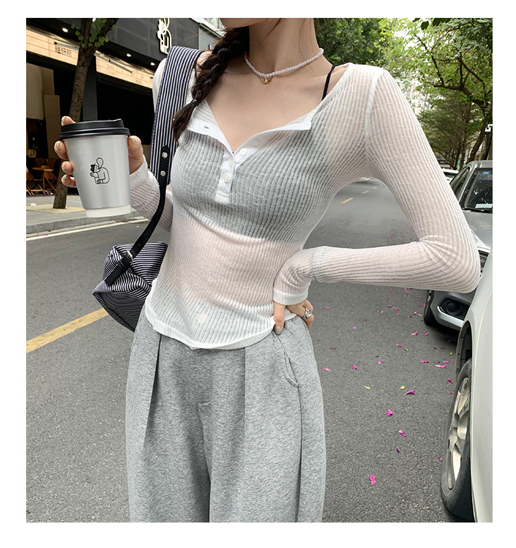 商品属性 [上市年份/季节] 2025年春季 [主要下游销售地区1] 东南亚 [主要下游销售地区2] 欧美 [主面料成分] 涤纶(聚酯纤维) [主面料成分2] 粘胶纤维 [主面料成分2含量] 30%以下 [主面料成分含量] 70%(含)-80%(不含) [图案] 纯色 [工艺] 针织 [是否跨境货源] 是 [款式] 套头 [流行元素] 微透 [版型] 修身型 [衣长] 普通款(50cm<衣长≤65cm) [袖型] 常规 [袖长] 长袖 [跨境风格类型] 性感辣妹 [面料名称] 聚酯纤维 [领型] 半开领 [风格] 通勤风 [风格类型] 气质通勤