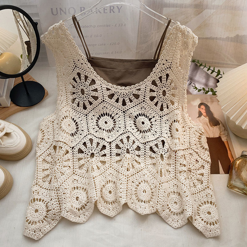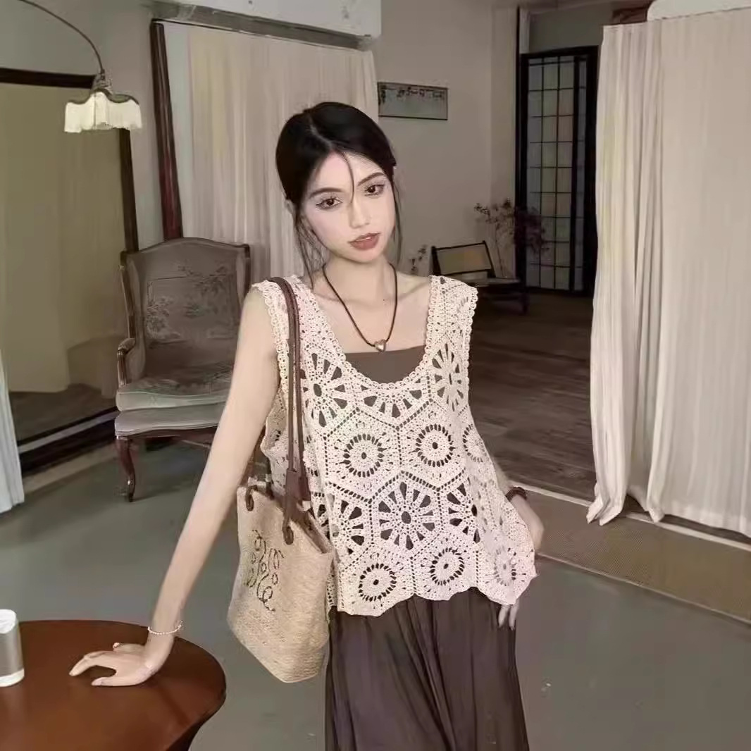 商品属性 [上市年份/季节] 2024年夏季 [主要下游销售地区1] 东南亚 [主要下游销售地区2] 欧美 [主面料成分] 棉 [主面料成分含量] 70%(含)-80%(不含) [图案] 几何图案 [弹力] 微弹 [是否跨境货源] 是 [款式] 吊带款 [流行元素] 勾花 [版型] 宽松型 [肩带样式] 双根式 [衣长] 短款(40cm<衣长≤50cm) [跨境风格类型] 性感辣妹 [面料名称] 棉 [风格] 通勤风 [风格类型] 气质通勤
