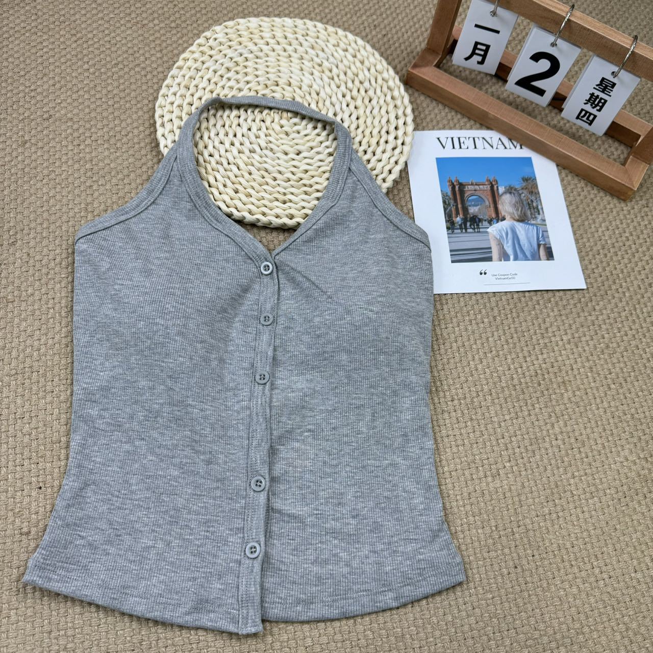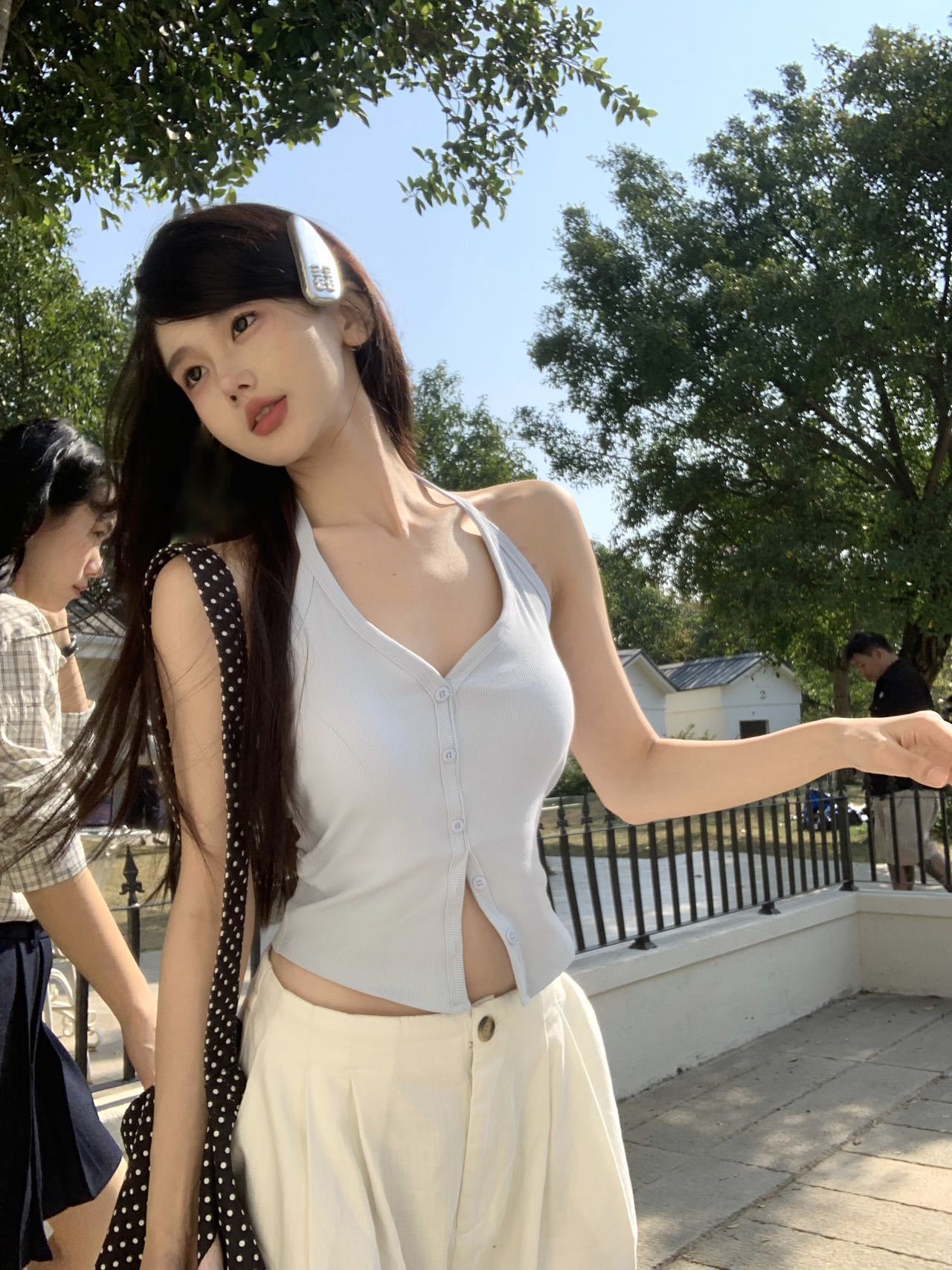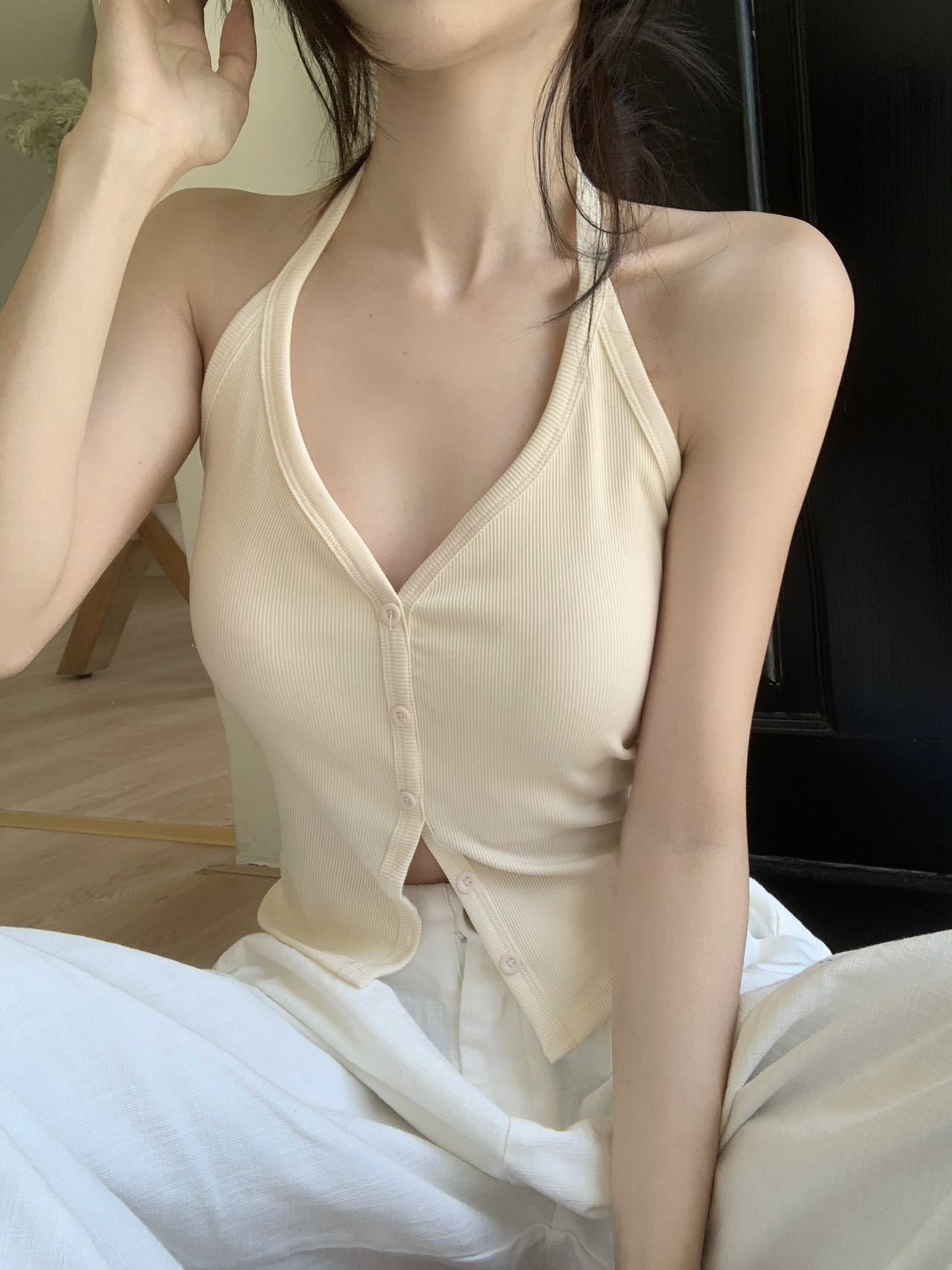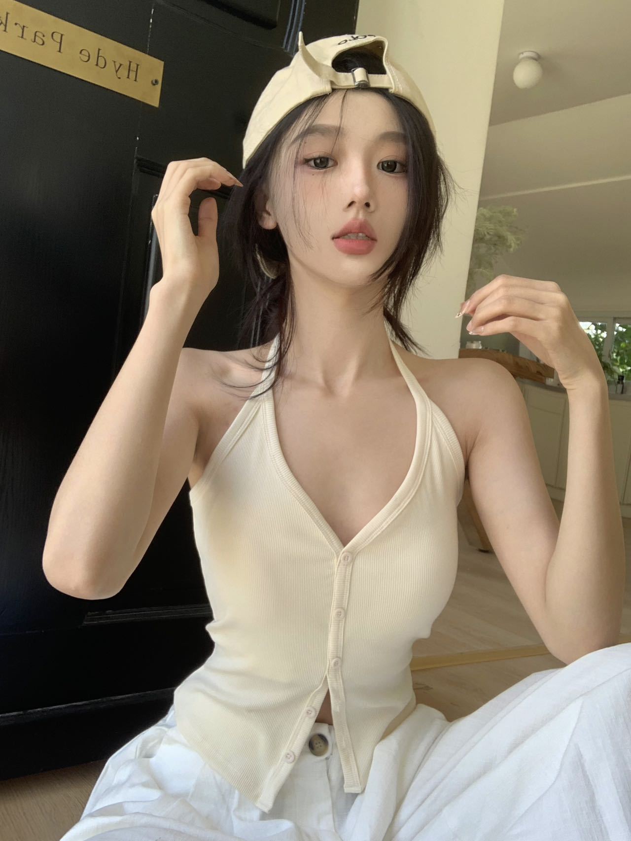 商品属性 [上市年份/季节] 2025年春季 [主面料成分] 锦纶 [主面料成分2] 锦纶 [主面料成分2含量] 80%(含)-90%(不含) [主面料成分含量] 80%(含)-90%(不含) [图案] 纯色 [弹力] 高弹 [是否跨境货源] 否 [款式] 挂脖款 [流行元素] 纽扣 [版型] 收腰型 [肩带样式] 挂脖肩带 [衣长] 普通款(50cm<衣长≤65cm) [面料名称] 棉 [风格] 街头风 [风格类型] 街头潮人