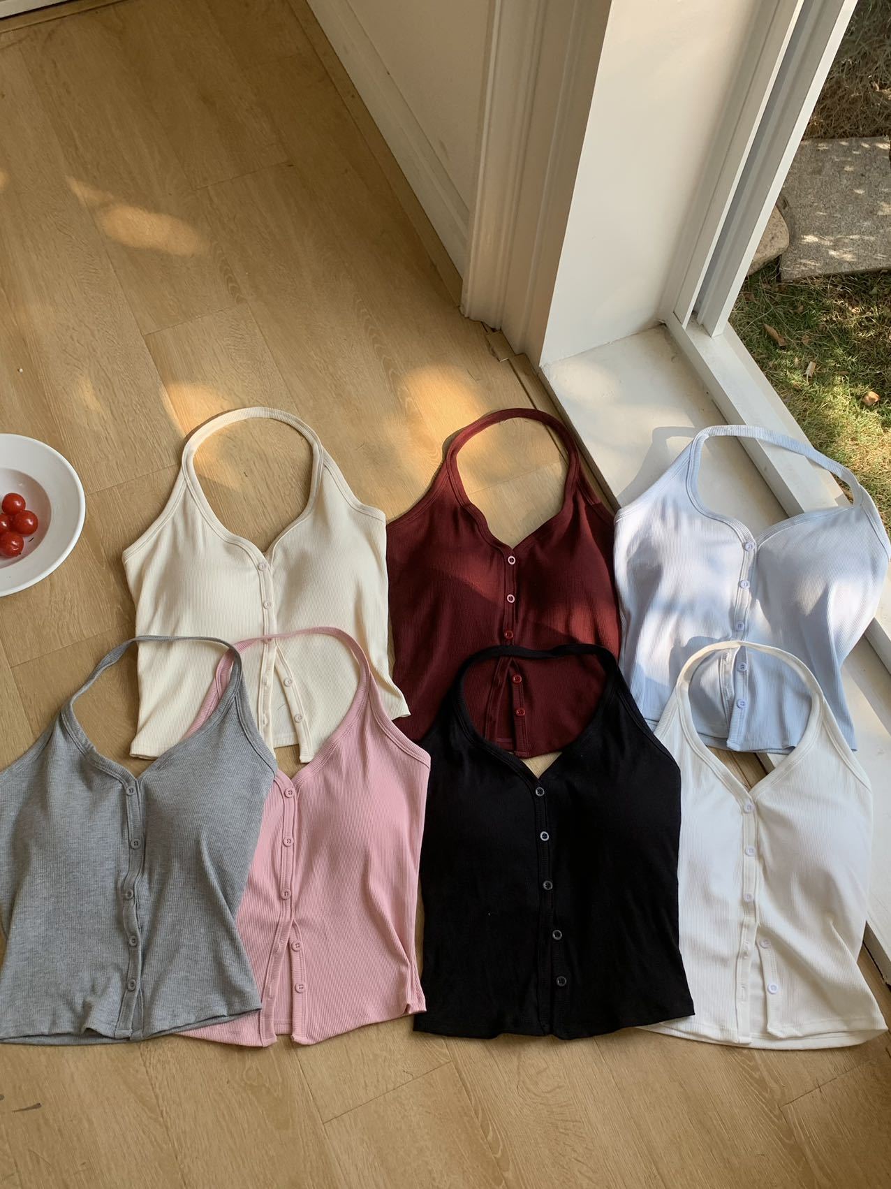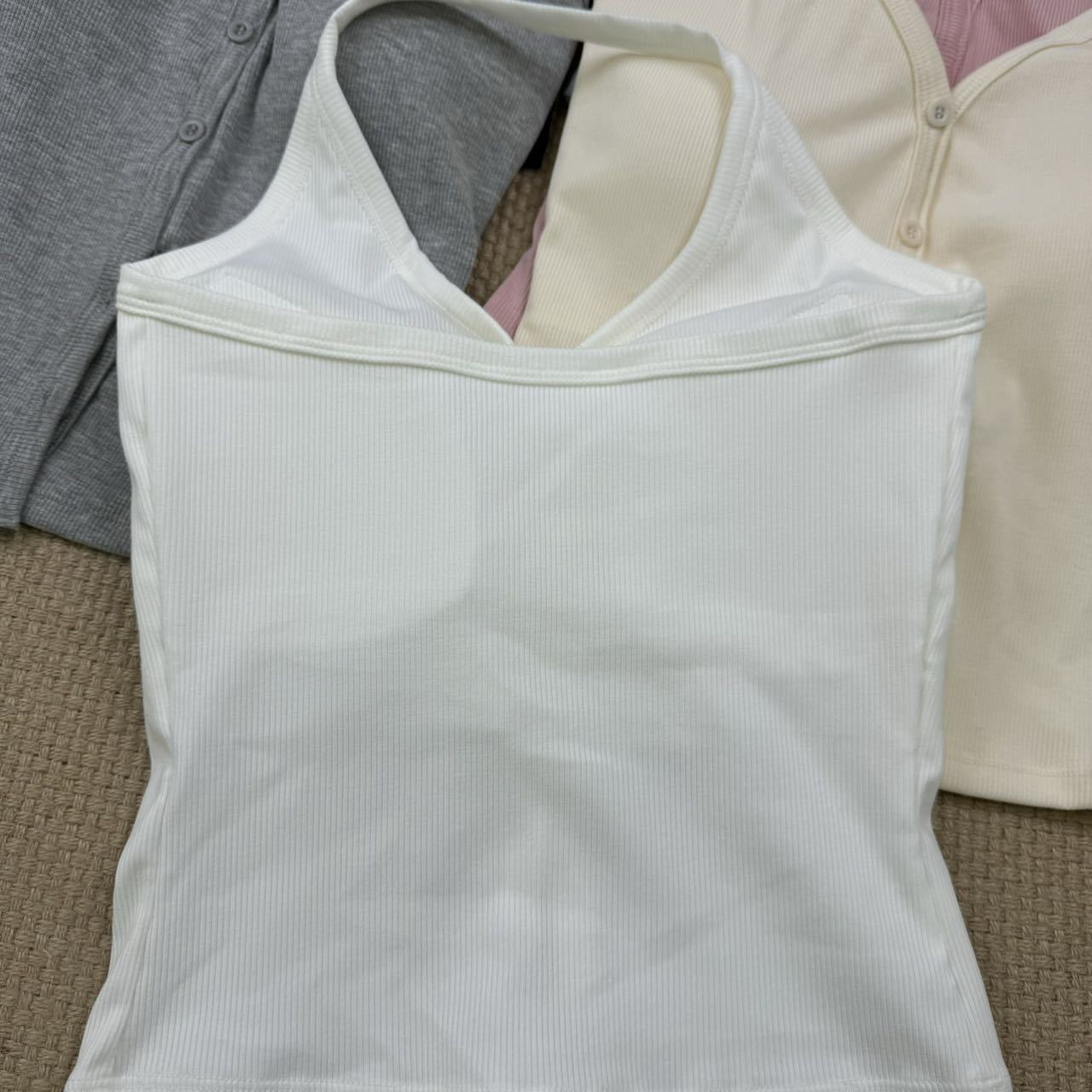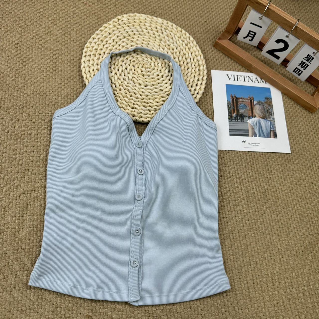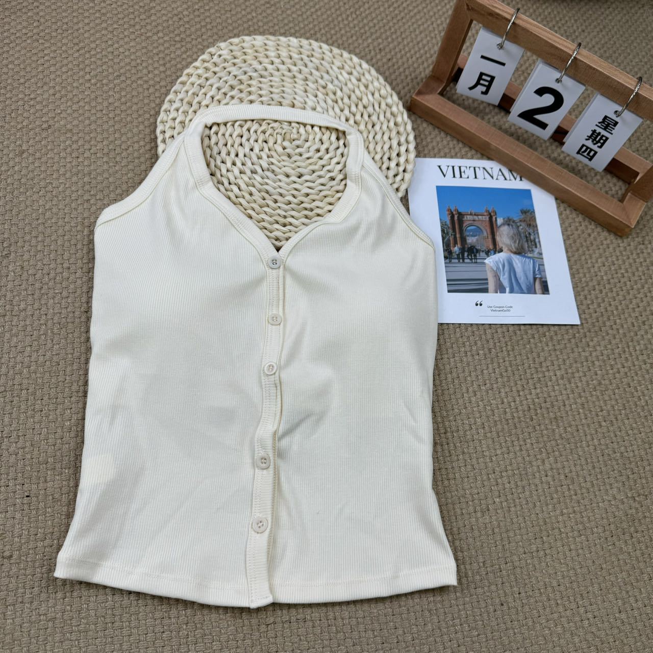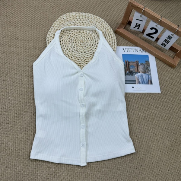 商品属性 [上市年份/季节] 2025年春季 [主面料成分] 锦纶 [主面料成分2] 锦纶 [主面料成分2含量] 80%(含)-90%(不含) [主面料成分含量] 80%(含)-90%(不含) [图案] 纯色 [弹力] 高弹 [是否跨境货源] 否 [款式] 挂脖款 [流行元素] 纽扣 [版型] 收腰型 [肩带样式] 挂脖肩带 [衣长] 普通款(50cm<衣长≤65cm) [面料名称] 棉 [风格] 街头风 [风格类型] 街头潮人