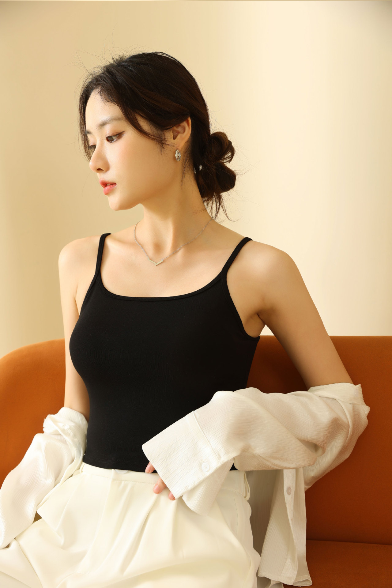 商品属性 [上市年份/季节] 2024年春季 [主面料成分] 粘胶纤维 [主面料成分2] 棉 [主面料成分2含量] 30%(含)-50%(不含) [主面料成分含量] 50%(含)-70%(不含) [图案] 纯色 [弹力] 中弹 [是否跨境货源] 否 [款式] 肩带型 [版型] 修身型 [肩带样式] 不可拆卸 [衣长] 普通款(50cm<衣长≤65cm) [面料名称] 粘纤 [风格] 休闲风 [风格类型] 日韩休闲