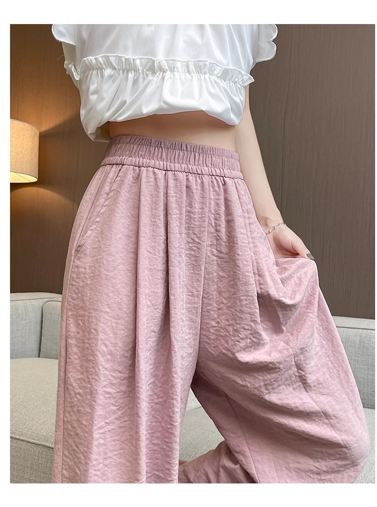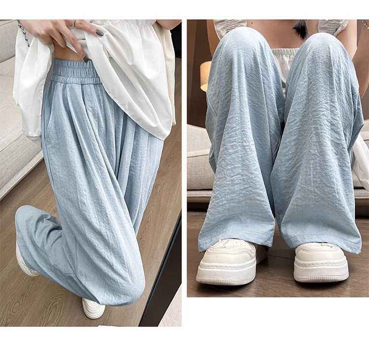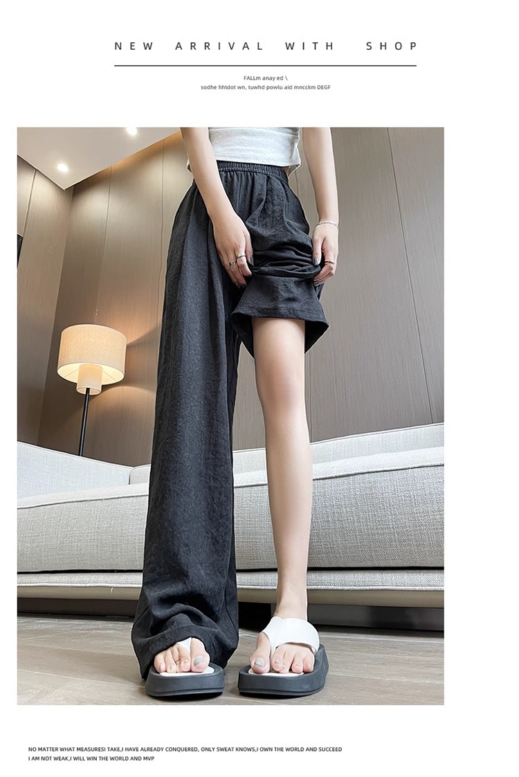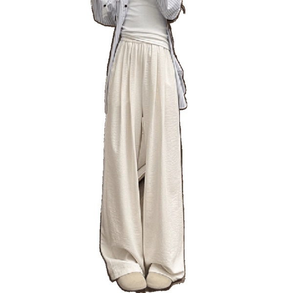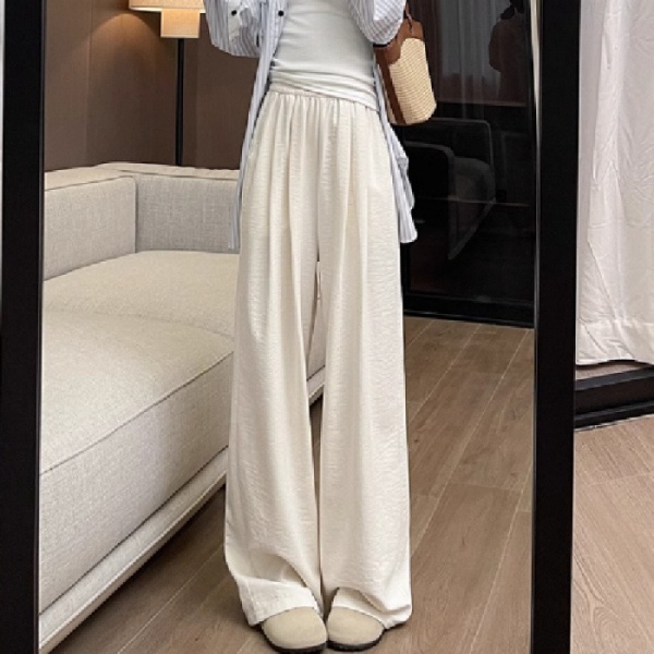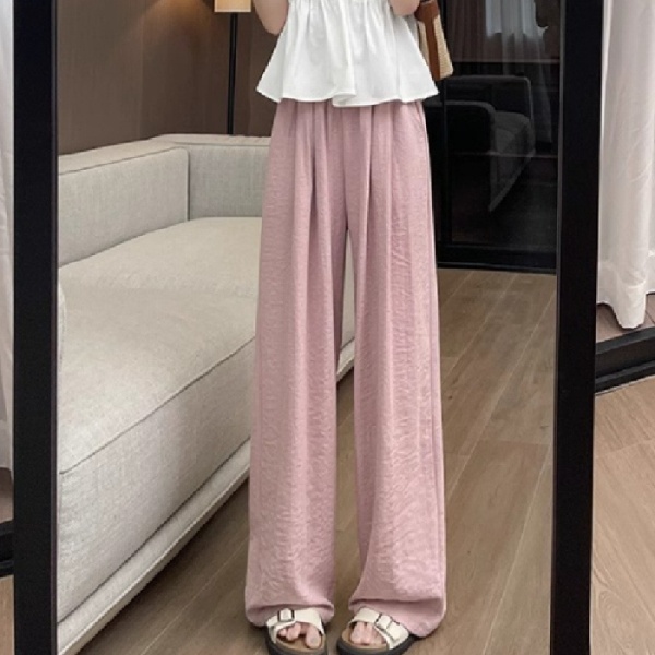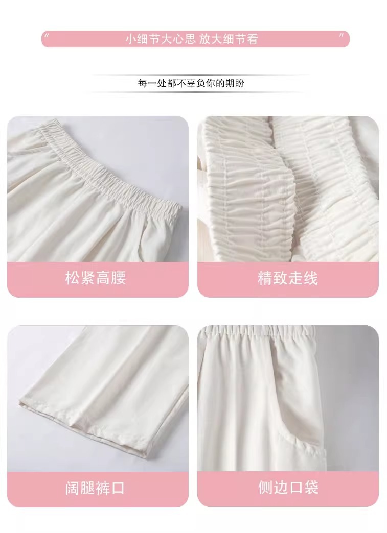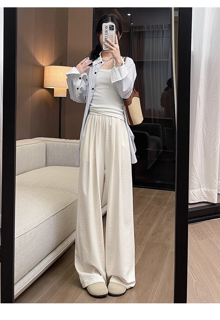 商品属性 [上市年份/季节] 2025夏季 [主要下游销售地区1] 中东 [主要下游销售地区2] 其他 [主面料成分] 其它 [主面料成分2] 其它 [主面料成分2含量] 95%及以上 [主面料成分含量] 95%及以上 [厚薄] 超薄 [工艺] 压花 [弹力] 无弹 [是否跨境货源] 是 [款式] 阔腿 [流行元素] 垂感 [腰型] 高腰 [裤型] 垂感裤 [裤长] 长裤 [跨境风格类型] 舒适休闲 [面料名称] 冰丝 [风格] 都市风 [风格类型] 气质通勤