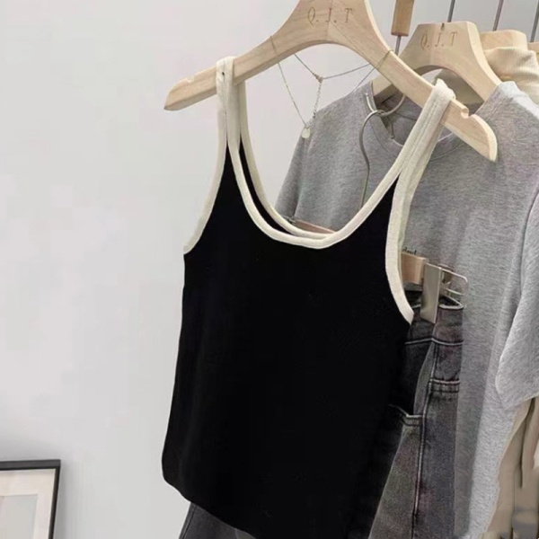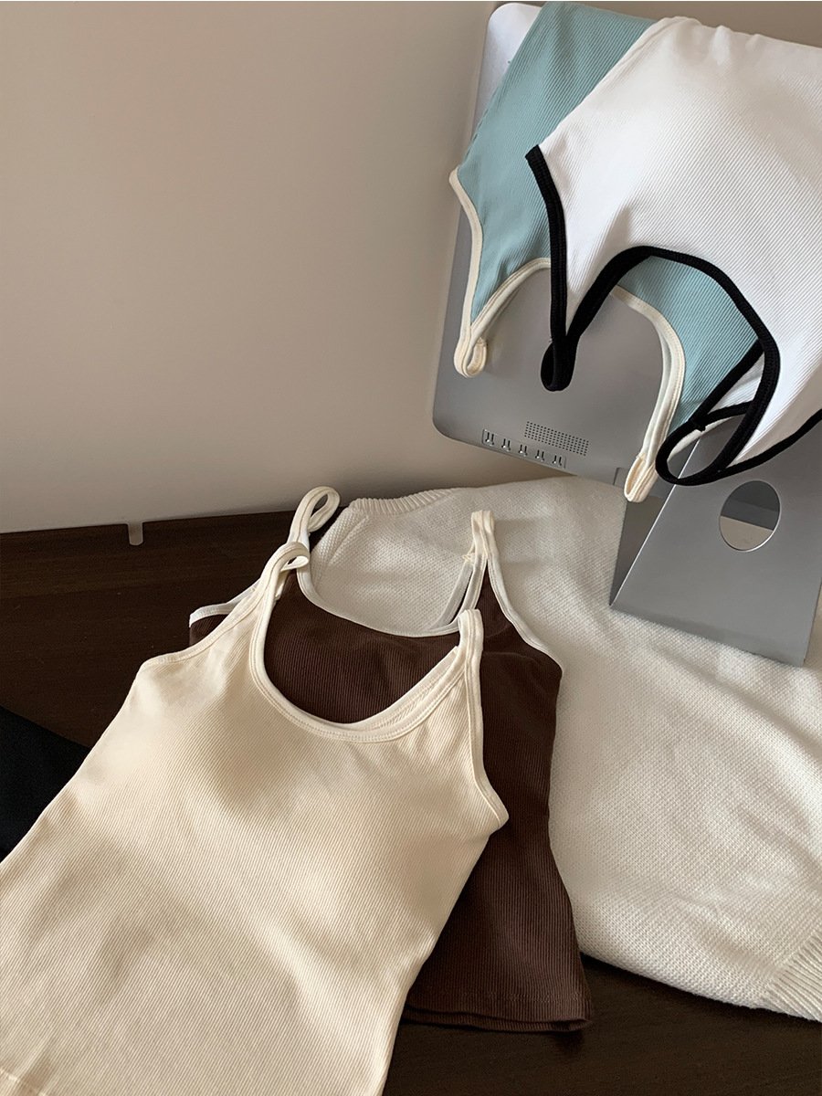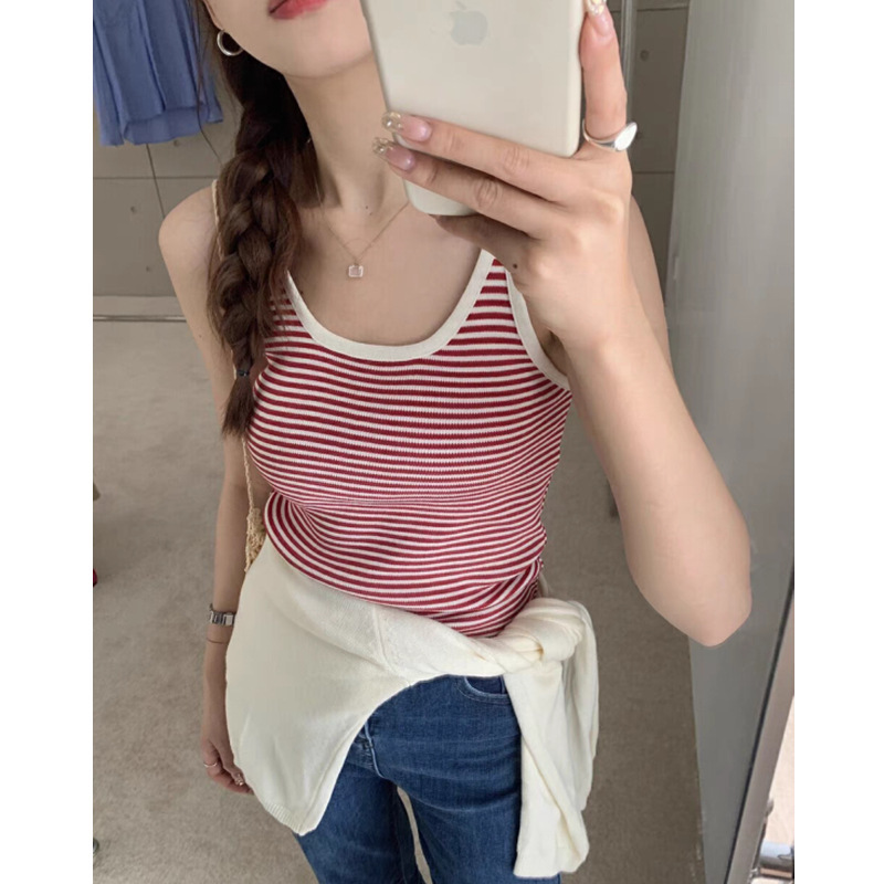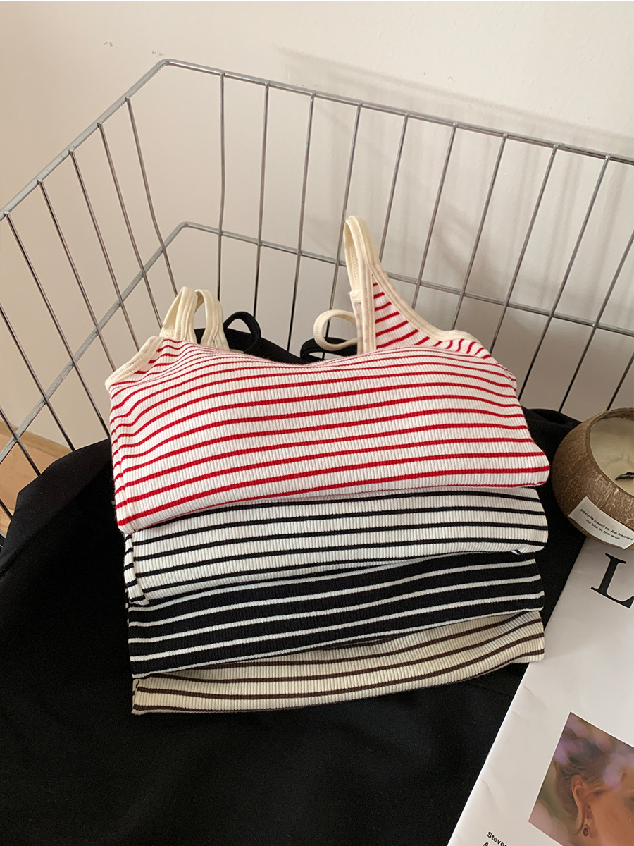 商品属性 [上市年份/季节] 2024年夏季 [主面料成分] 棉 [主面料成分2] 氨纶 [主面料成分2含量] 30%以下 [主面料成分含量] 90%(含)-95%(不含) [图案] 条纹 [弹力] 中弹 [是否跨境货源] 否 [款式] 吊带款 [流行元素] 撞色 [版型] 修身型 [肩带样式] 不可拆卸 [衣长] 短款(40cm<衣长≤50cm) [面料名称] 螺纹棉 [风格] 简约风 [风格类型] 日韩休闲
