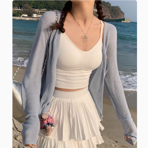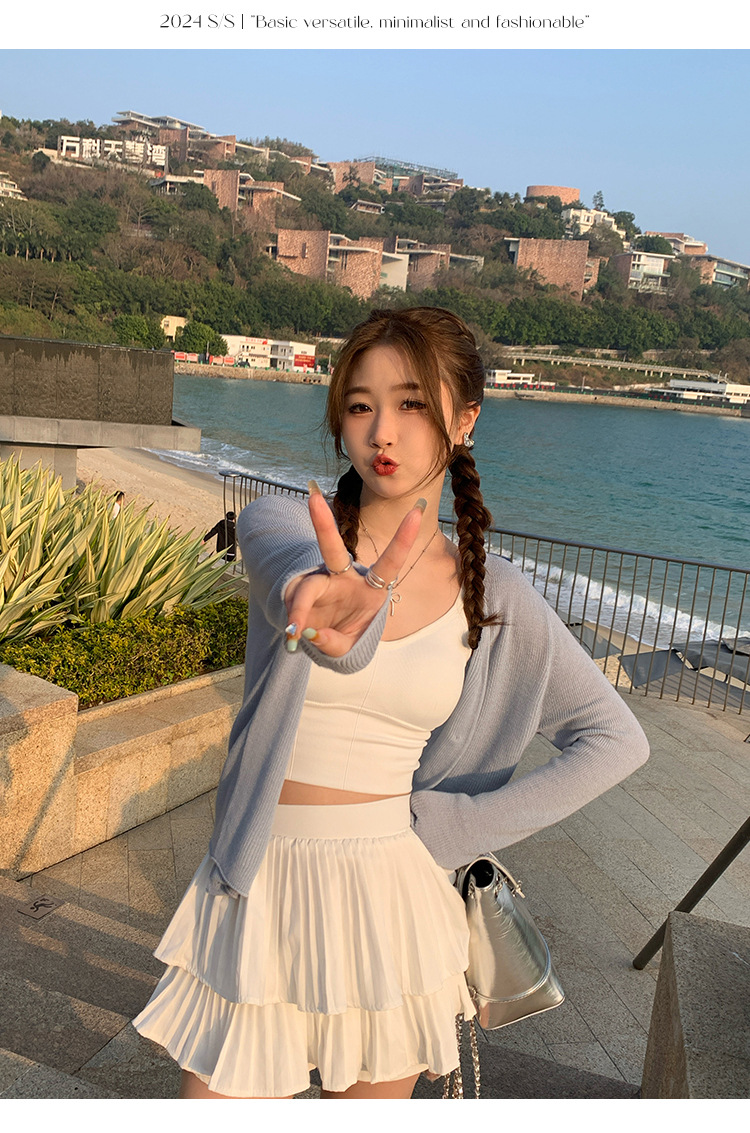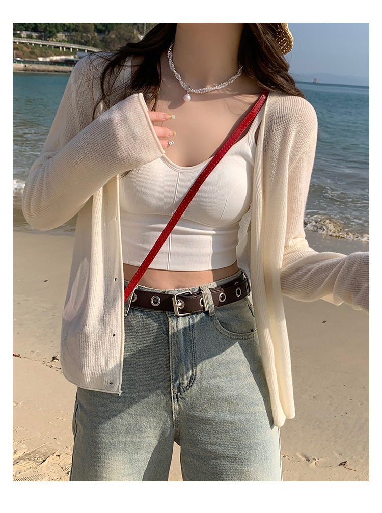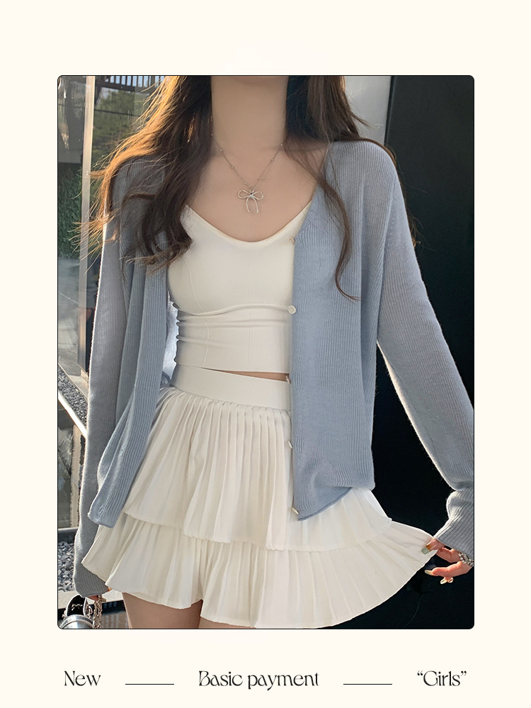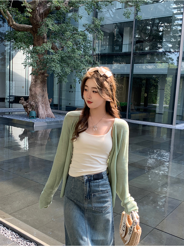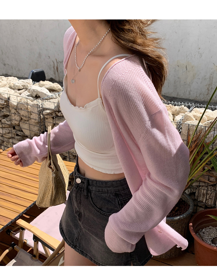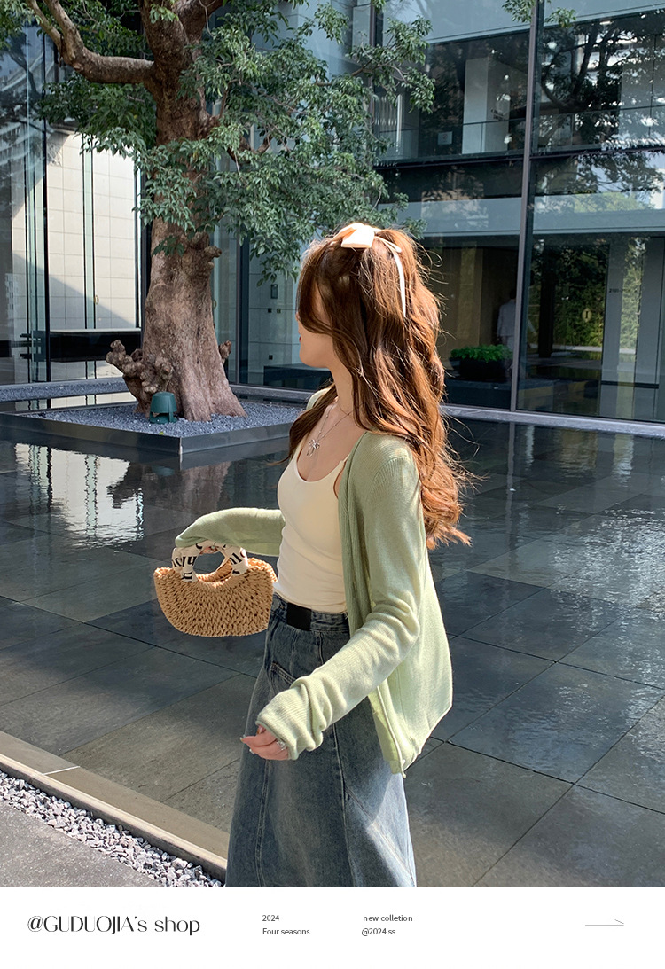 商品属性 [上市年份/季节] 2025夏季 [主面料成分] 涤纶(聚酯纤维) [主面料成分2] 氨纶 [主面料成分2含量] 30%以下 [主面料成分含量] 70%(含)-80%(不含) [厚薄] 中等 [图案] 纯色 [工艺] 针织 [是否跨境货源] 否 [款式] 开衫 [流行元素] 纽扣 [版型] 修身型 [穿着方式] 开衫 [组合形式] 单件 [衣长] 普通款(50cm<衣长≤65cm) [袖型] 常规 [袖长] 长袖 [门襟] 单排扣 [面料名称] 聚酯纤维 [领型] 无领 [风格] 都市风 [风格类型] 气质通勤
