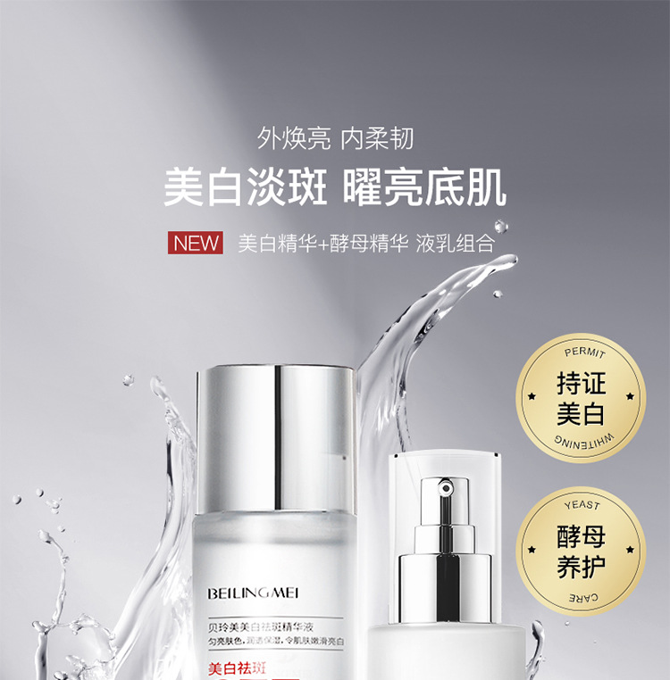 商品属性 [产品名称] 贝玲美酵母焕颜精华乳 [产品系列] 水乳两件套 [产地] 广东 [保质期] 3年 [化妆品功效] 补水保湿,提亮肤色 [品牌类型] 精品国货 [是否进口] 否 [特殊用途化妆品] 是 [特殊用途化妆品证号] 国妆特字20235482 [生产许可证号] 粤妆20160737 [适用人群] 女士 [适用肤质] 通用