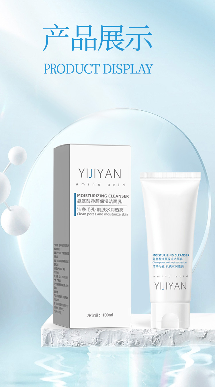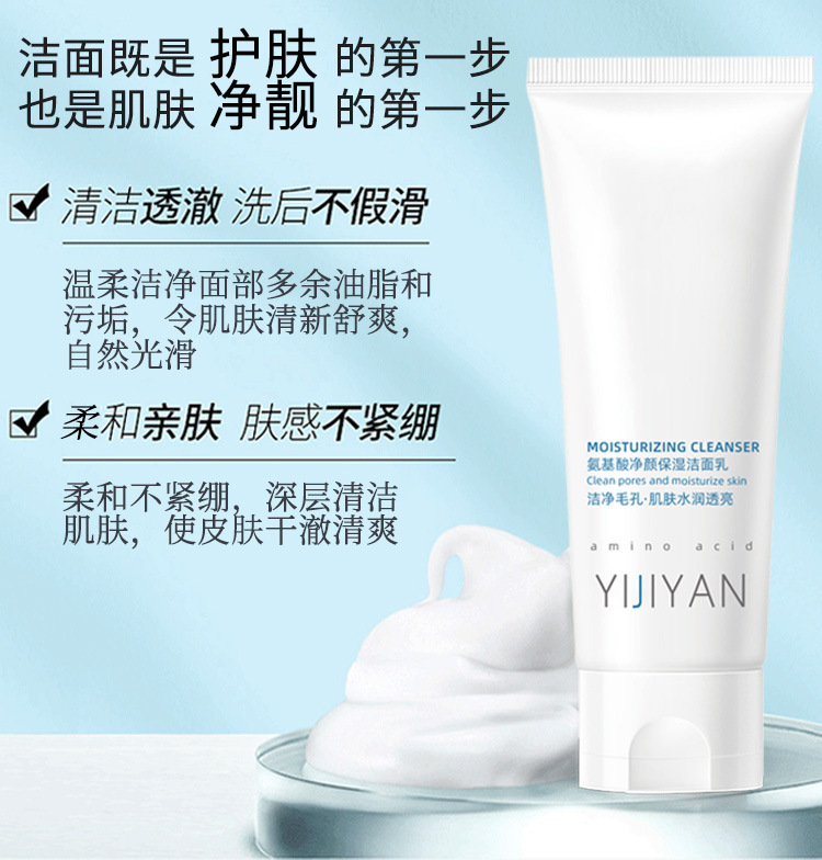 商品属性 [主要下游平台] ebay,亚马逊,wish,速卖通,独立站,LAZADA [主要销售地区] 非洲,欧洲,南美,东南亚,北美,东北亚,中东 [产品名称] YIJIYAN医肌颜氨基酸净颜保湿洁面乳 [产地] 广东 [保质期] 5年 [化妆品功效] 收缩毛孔,补水保湿,提亮肤色,滋润,深层清洁,舒缓肌肤,柔润肌肤 [品牌类型] 国货品牌 [成分] 甘油 [是否跨境出口专供货源] 是 [是否进口] 否 [有可授权的自有品牌] 是 [特殊用途化妆品] 否 [生产许可证号] 粤妆20210263 [起泡程度] 泡沫洁面 [适用人群] 女士,普通人群 [适用肤质] 中性,油性,干性,混合性 [非特化妆品备案证号] 粤G妆网备字2023522897