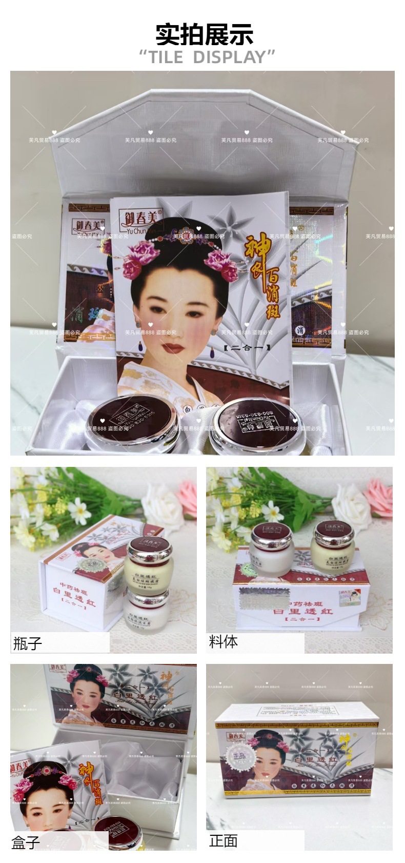 商品属性 [主要下游平台] ebay,亚马逊,wish,速卖通,独立站,LAZADA [主要销售地区] 非洲,欧洲,南美,东南亚,北美,东北亚,中东 [产品名称] 御春美二合一 [产地] 广东 [保质期] 3年 [化妆品功效] 美白,祛斑 [品牌类型] 精品国货 [是否跨境出口专供货源] 是 [是否进口] 否 [特妆产品名称] 御春美二合一 [特殊用途化妆品] 是 [特殊用途化妆品证号] 国妆特字G20181196 [生产许可证号] 001 [适用人群] 通用 [适用肤质] 中性,油性,干性,混合性