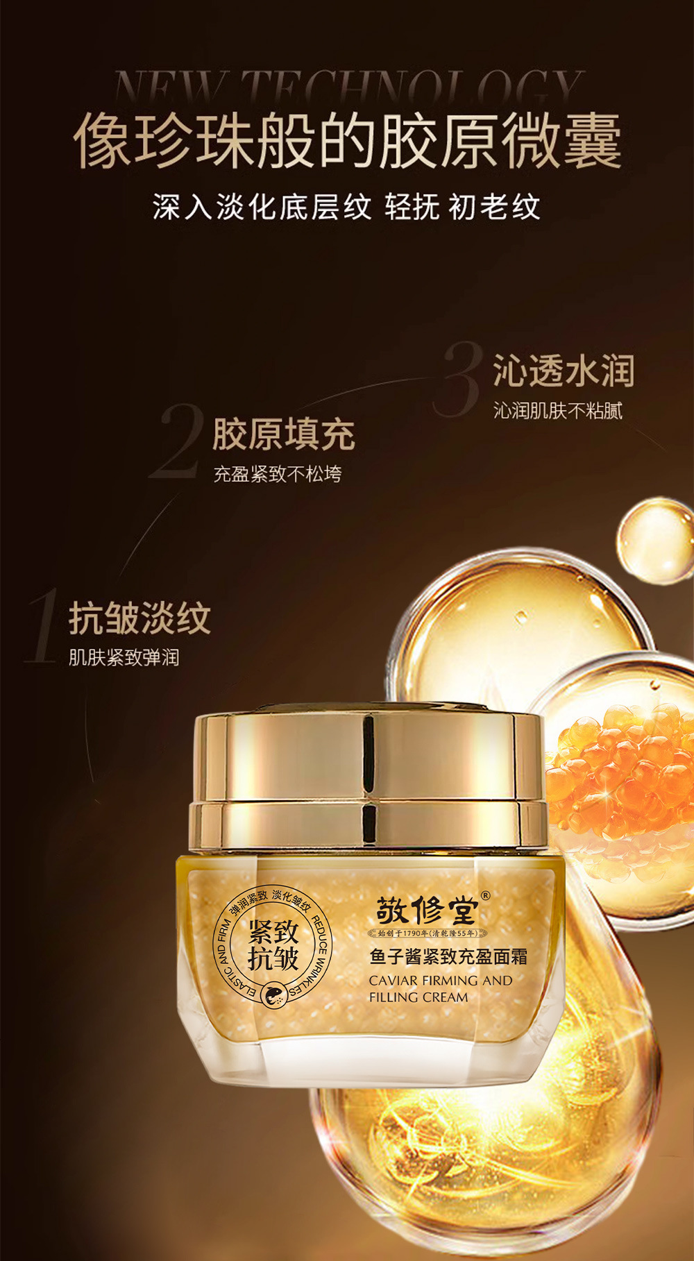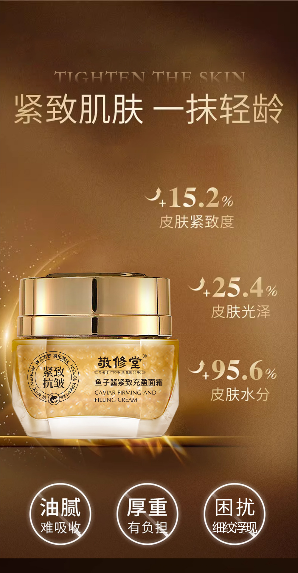 商品属性 [主要下游平台] ebay,亚马逊,wish,速卖通,独立站,LAZADA [主要销售地区] 非洲,欧洲,南美,东南亚,北美,东北亚,中东 [乳液/面霜品类] 乳液面霜 [产品名称] 鱼子酱紧致充盈面霜 [产地] 广州 [保质期] 三年 [化妆品功效] 补水保湿,滋润,紧致,柔润肌肤 [品牌类型] OEM [成分原料] 22691110105,35104711680 [是否跨境出口专供货源] 是 [是否进口] 否 [有可授权的自有品牌] 是 [特殊用途化妆品] 否 [生产许可证号] 粤妆20160535 [适用人群] 通用 [适用肤质] 通用 [非特化妆品备案证号] 粤G妆网备字2022055006