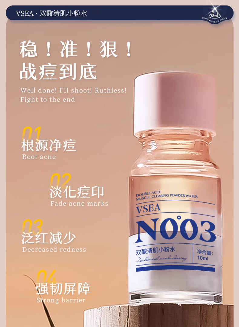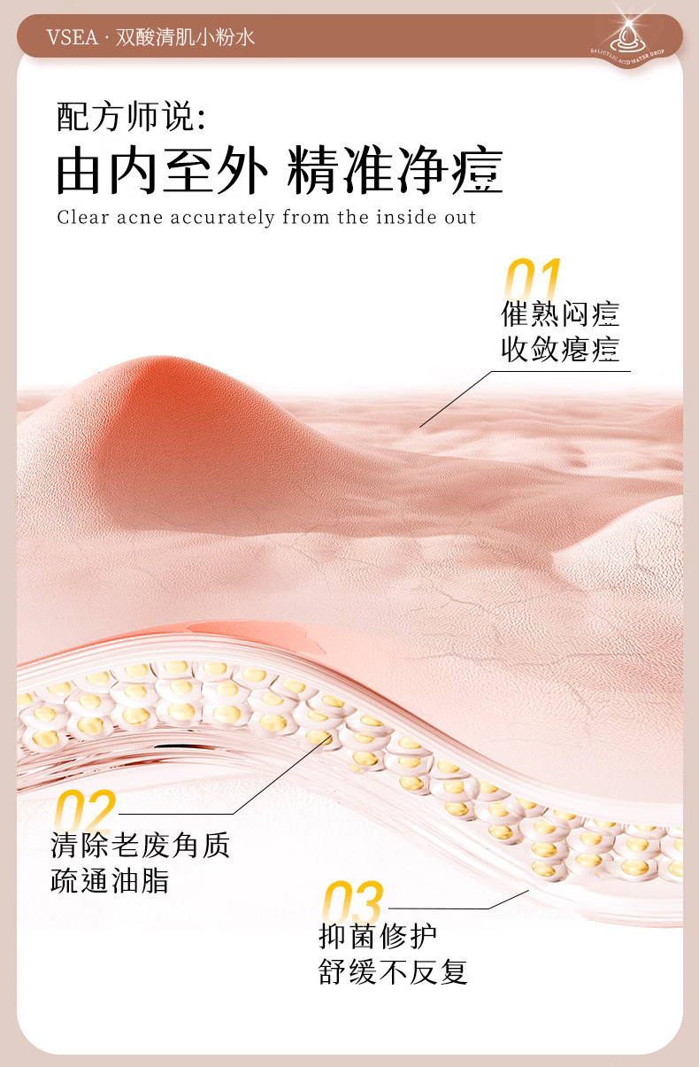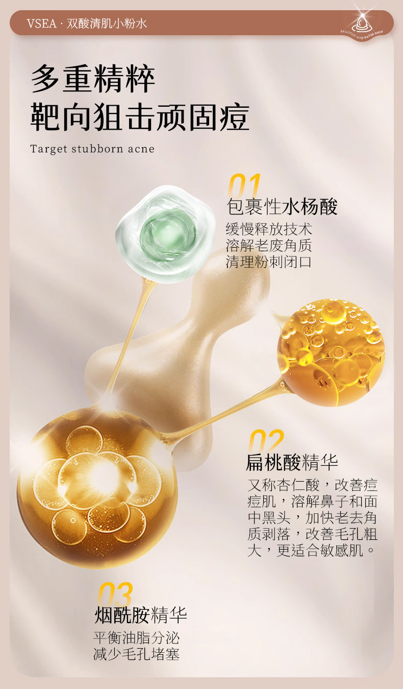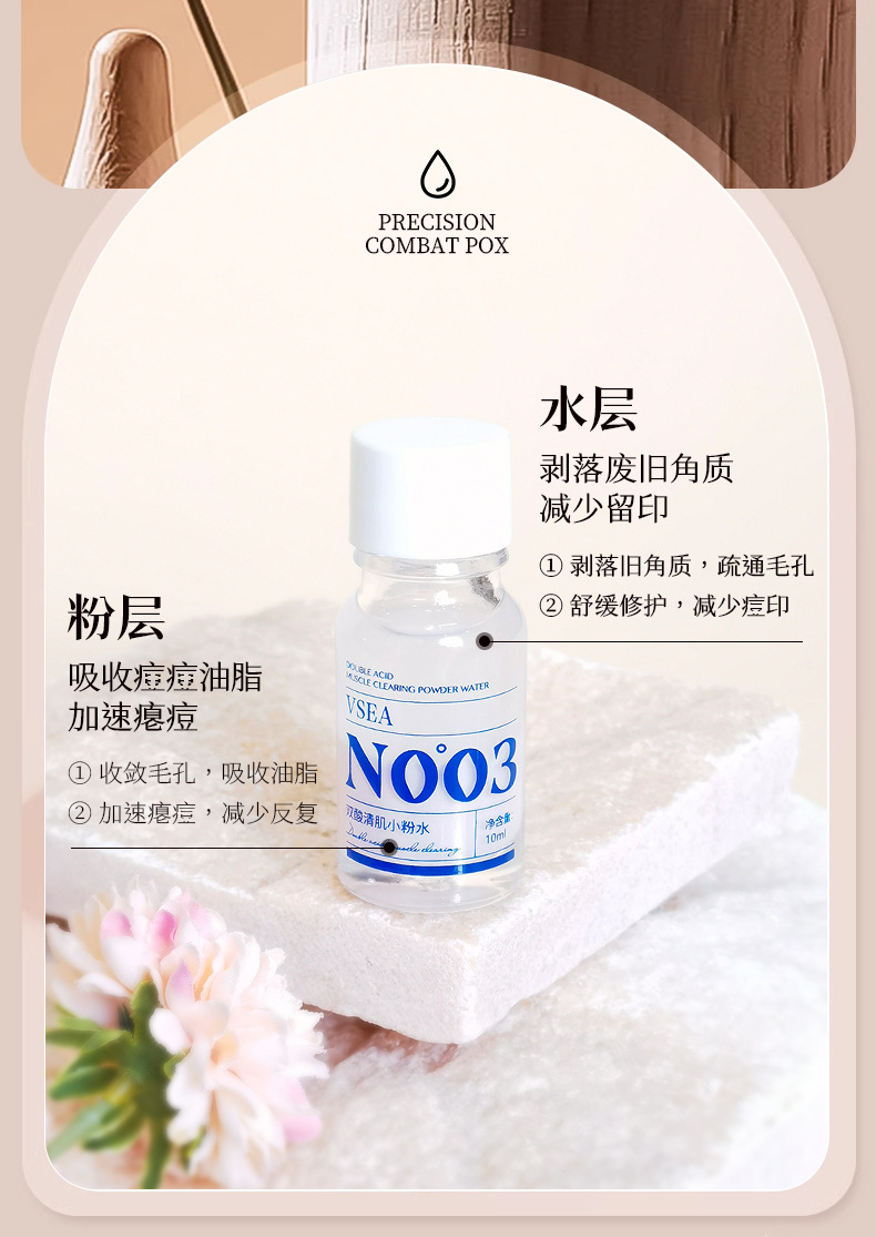 商品属性 [产品名称] VSEA双酸清肌小粉水 [产地] 广州 [保质期] 3年 [化妆品功效] 收缩毛孔,祛痘,改善黑头 [品牌类型] 国货品牌 [是否跨境出口专供货源] 否 [是否进口] 否 [特殊用途化妆品] 否 [生产许可证号] 粤妆20161172 [适用人群] 通用 [适用肤质] 通用 [非特化妆品备案证号] 粤G妆网备字2021638808