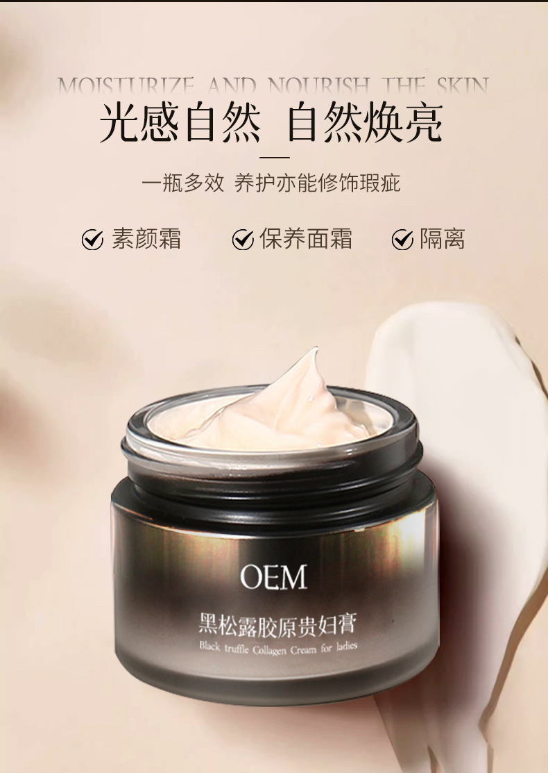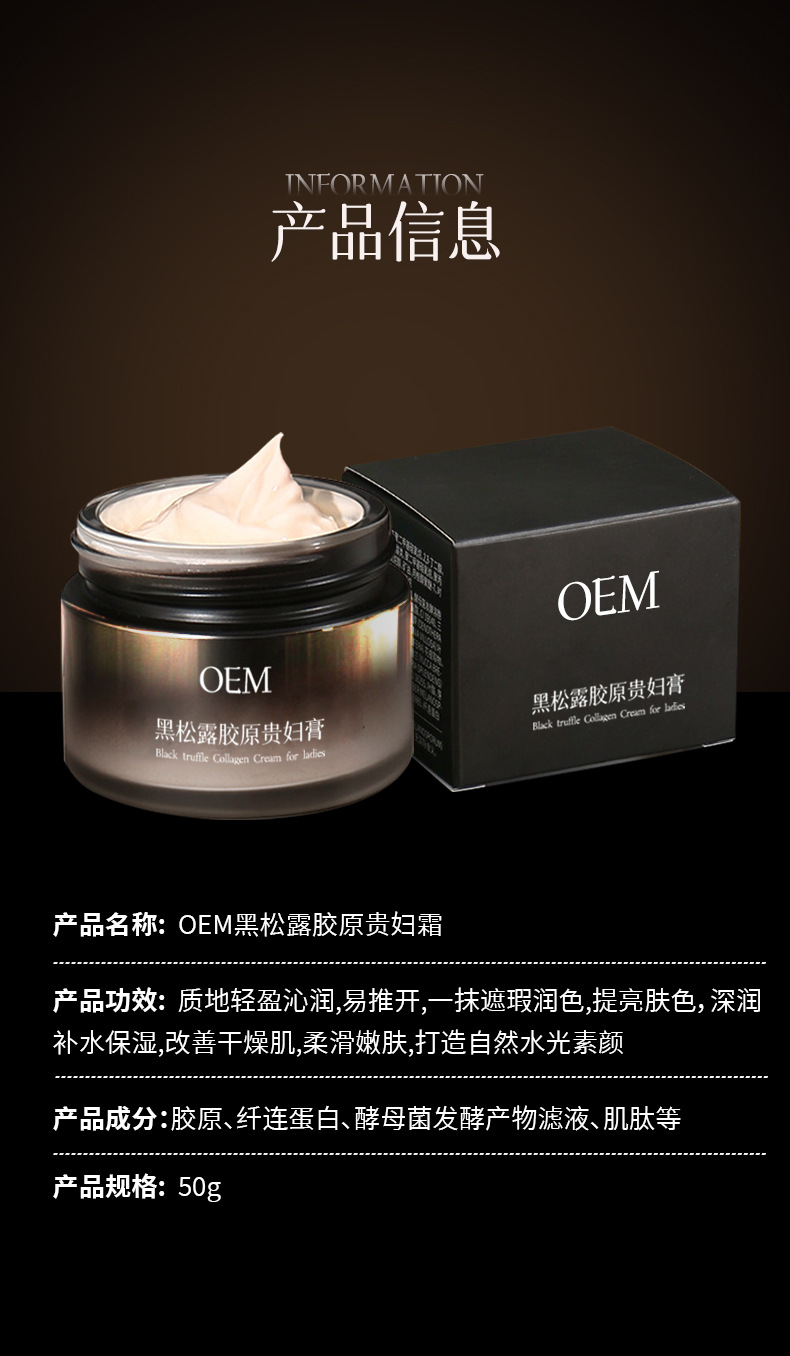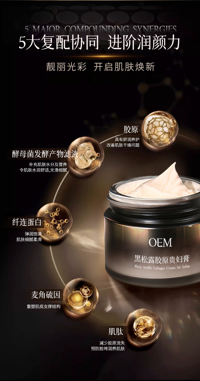 商品属性 [产品名称] 黑松露胶原贵妇膏 [产地] 广东 [保质期] 3年 [化妆品功效] 补水保湿,滋润 [品牌类型] 国货品牌 [是否跨境出口专供货源] 否 [是否进口] 否 [特妆产品名称] 胶原蛋白贵妇膏 [特殊用途化妆品] 否 [生产许可证号] 粤妆20210135 [适用人群] 女士 [适用肤质] 中性,油性,干性 [非特化妆品备案证号] 粤G妆网备字2023407252