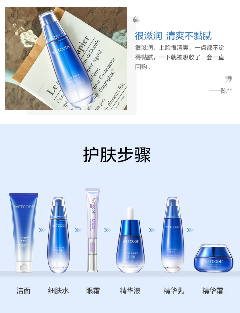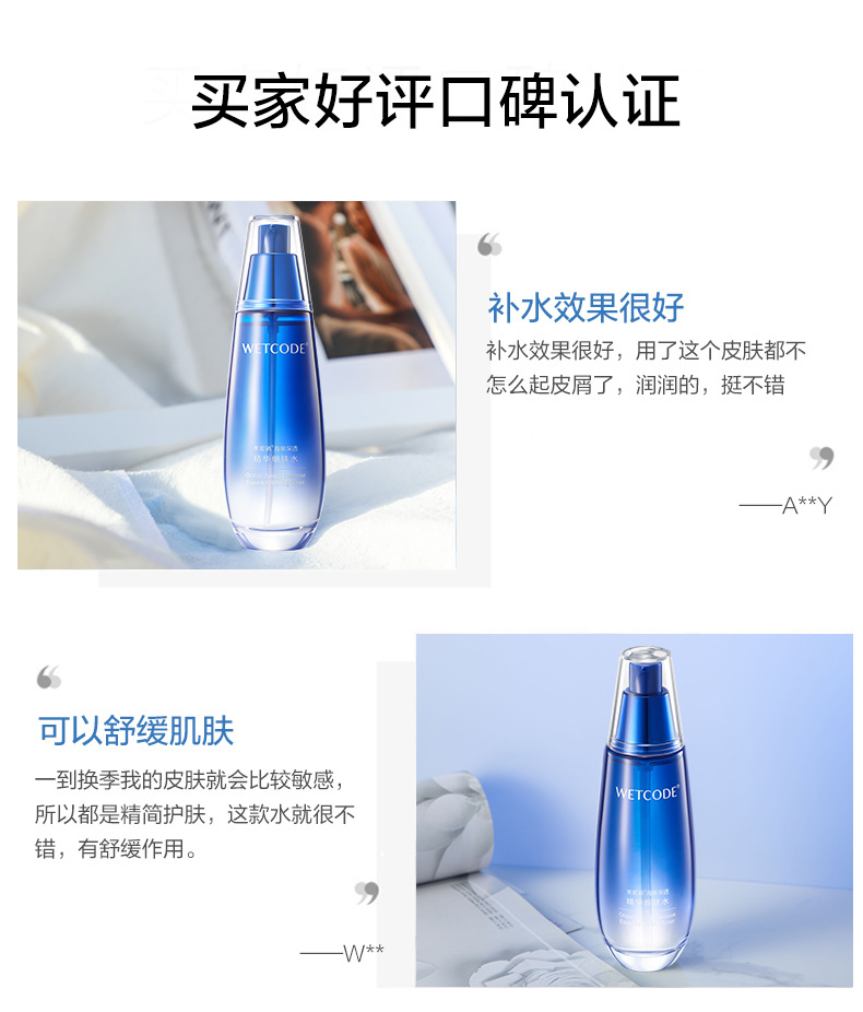 商品属性 [产品名称] 水密码海泉深透精华水 [产品系列] 海泉深透 [产地] 广州 [保质期] 3年 [化妆品功效] 滋润 [品牌类型] 国货品牌 [是否跨境出口专供货源] 否 [是否进口] 否 [特殊用途化妆品] 否 [生产许可证号] 粤妆20160019 [适用人群] 女士 [非特化妆品备案证号] 粤G妆网备字2017061016