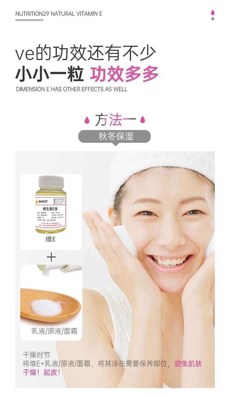 商品属性 [产品名称] 琦后维生素e油 [产地] 广州 [保质期] 3年 [品牌类型] 国货品牌 [是否进口] 否 [特殊用途化妆品] 否 [适用人群] 通用 [适用肤质] 通用 [非特化妆品备案证号] 粤G妆网备字2021634570