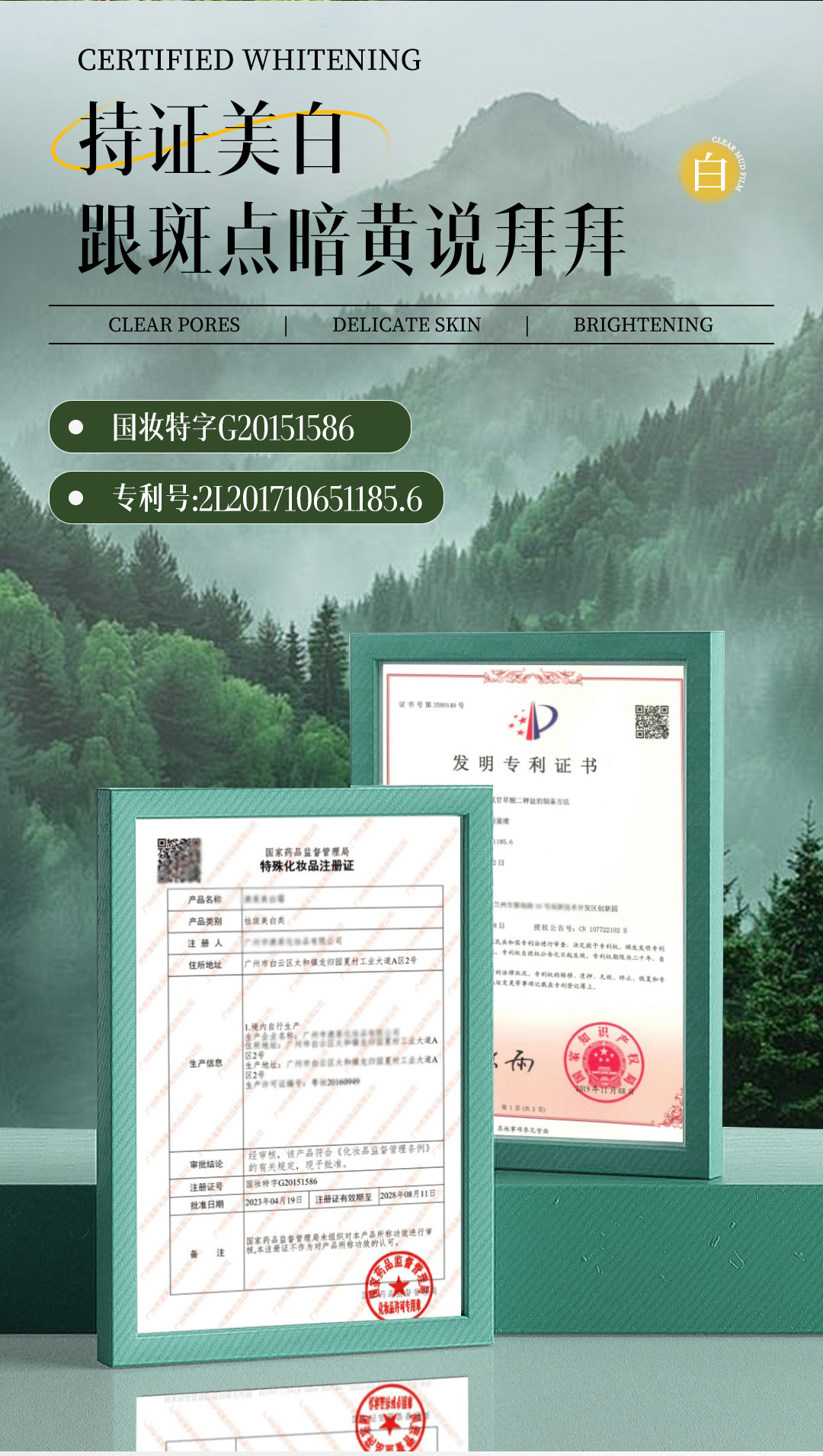 商品属性 [产品形态] 膏状 [产品类别] 睡眠免洗式 [保质期] 3年 [功效] 美白,祛斑 [化妆品功效] 保湿,其他功效,补水,提亮肤色,滋润,紧致 [化妆品成份] 其它成分 [成分原料] 烟酰胺 [是否进口] 否 [特殊用途化妆品] 是 [特殊用途化妆品证号] 国妆特字G20151586 [适用肤质] 女士,男士