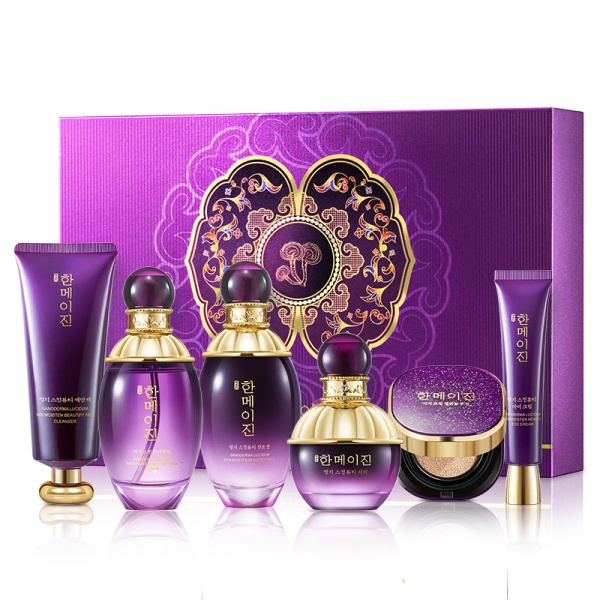 商品属性 [产品名称] 韓美肌灵芝润肤美颜六件套 [产品系列] 韩美肌紫灵芝润肤美颜套盒 [产地] 广州 [保质期] 3年 [化妆品功效] 控油,收缩毛孔,补水保湿,提亮肤色,滋润,深层清洁,舒缓肌肤,柔润肌肤 [品牌类型] 精品国货 [商品条形码] 6940824112845 [是否跨境出口专供货源] 否 [是否进口] 否 [特殊用途化妆品] 否 [生产许可证号] XK16-108 6955 [箱] 16 [适用人群] 通用 [适用肤质] 通用 [非特化妆品备案证号] 粤G妆网备字2022088649