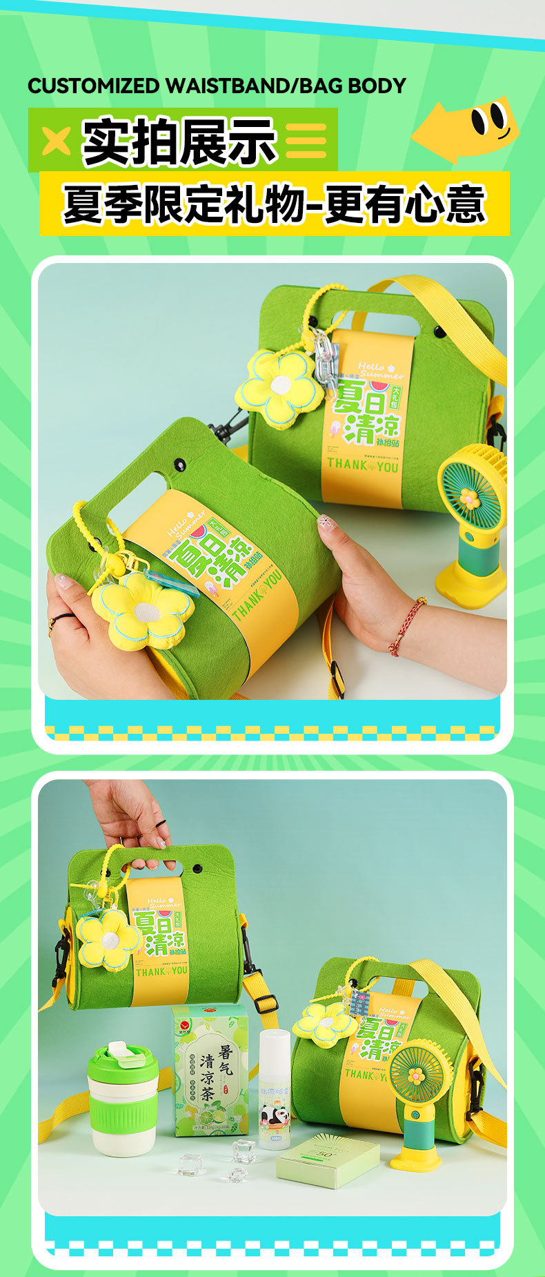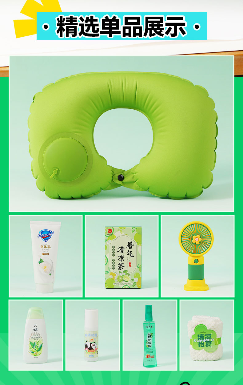 商品属性 [卖点] 福利夏季伴手礼套装 [是否IP授权] 否 [是否专利货源] 否 [是否属于礼品] 是,商务礼品 [有可授权的自有品牌] 否 [材质] 毛绒 [特色] 夏日清凉防暑礼包 [用途] 送客户高档礼品 [类别] 商务礼品套装 [送礼用途] 商务礼品,福利礼品 [适用节日] 通用 [适用送礼关系] 同事,朋友 [适用送礼场合] 派对聚会 [风格] 现代艺术