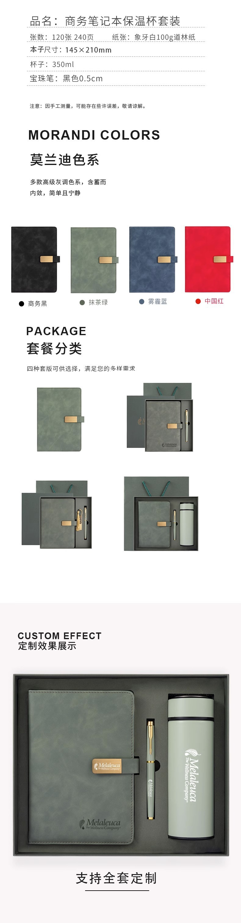 商品属性 [是否IP授权] 否 [是否专利货源] 否 [是否属于礼品] 是,商务礼品 [有可授权的自有品牌] 否 [材质] 纸 [类别] 商务礼品套装 [送礼用途] 商务礼品,广告礼品,会议礼品,福利礼品,节庆礼品 [适用节日] 圣诞节,教师节,元旦 [适用送礼关系] 朋友,长辈,同学,恩师,其他 [适用送礼场合] 其他 [风格] 现代简约