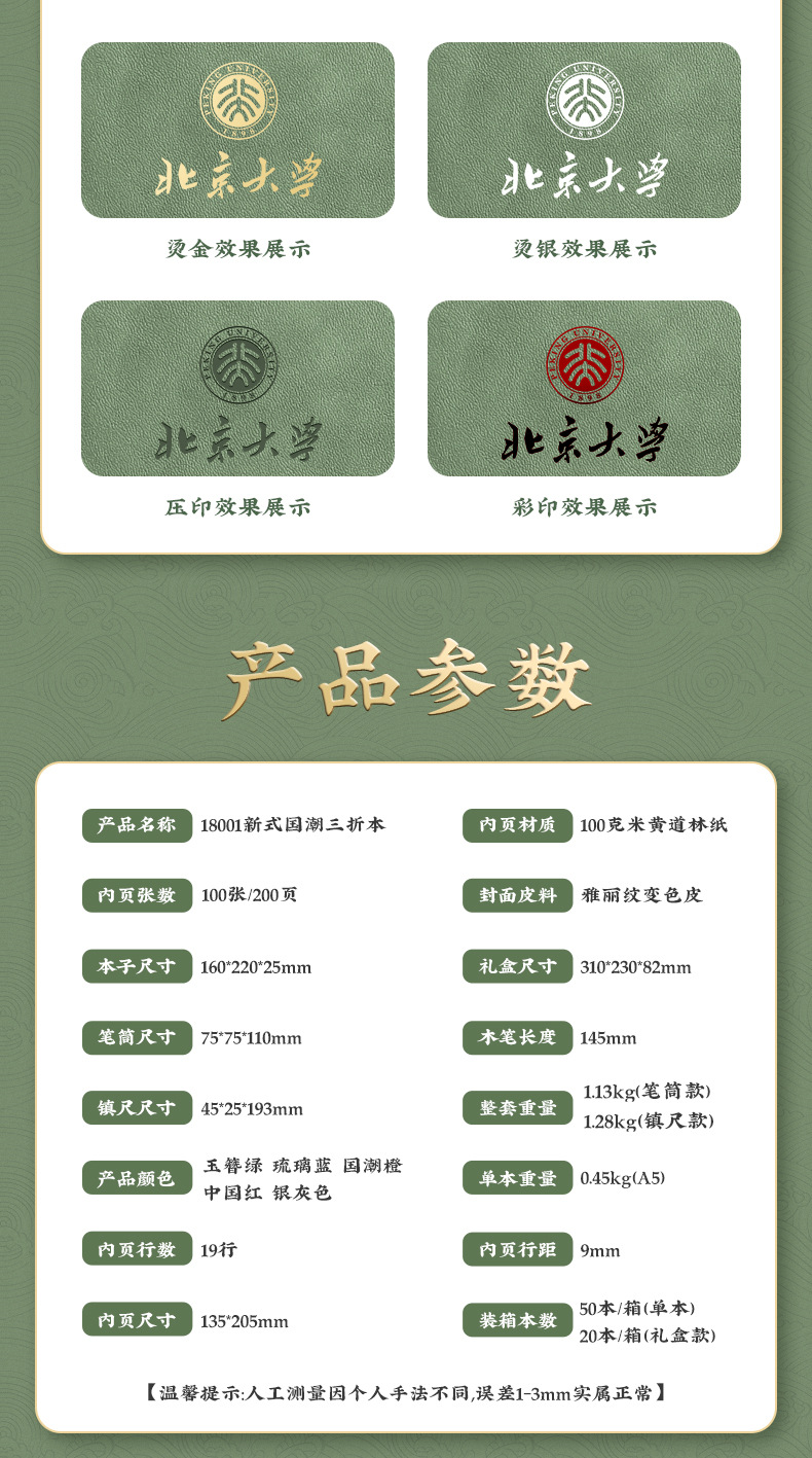 商品属性 [是否IP授权] 否 [是否专利货源] 否 [是否属于礼品] 是,商务礼品 [有可授权的自有品牌] 否 [材质] 纸 [类别] 商务礼品套装 [送礼用途] 商务礼品,广告礼品,会议礼品,福利礼品,节庆礼品,嘉奖纪念,公关礼品,其他 [适用节日] 通用,教师节,其他 [适用送礼关系] 同事,朋友,长辈,同学,恩师,其他 [适用送礼场合] 生日,旅游纪念,毕业,派对聚会,其他 [风格] 国潮