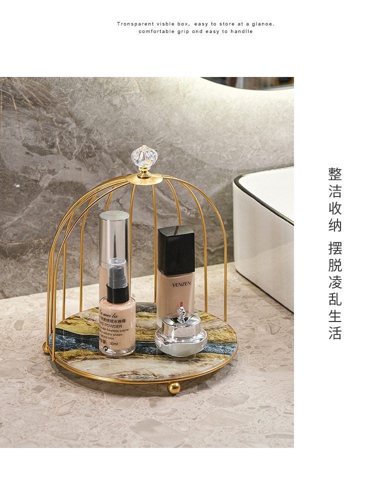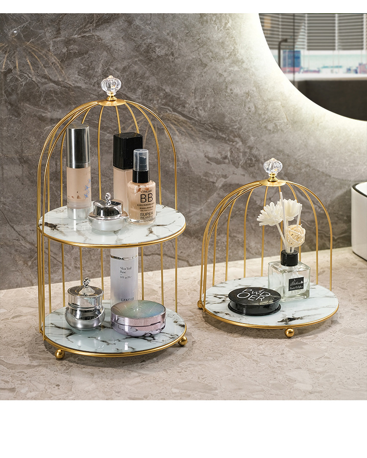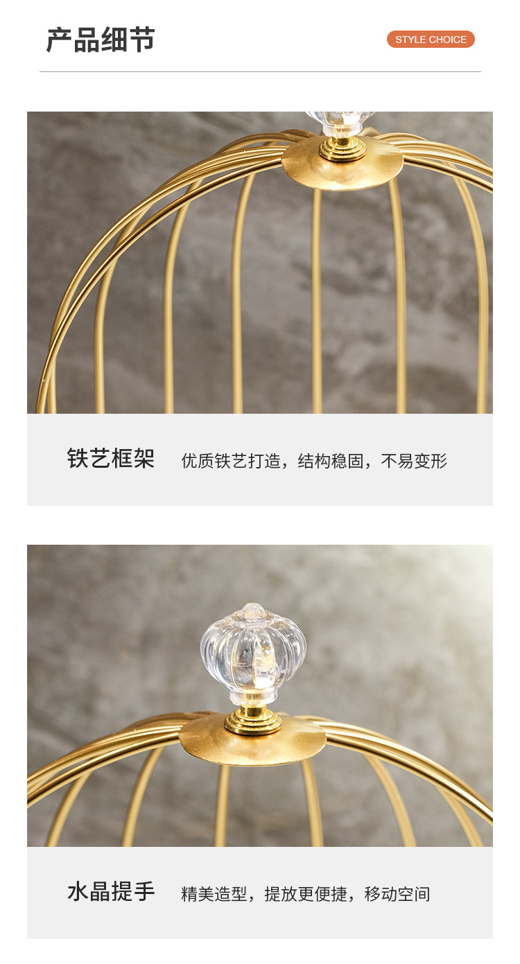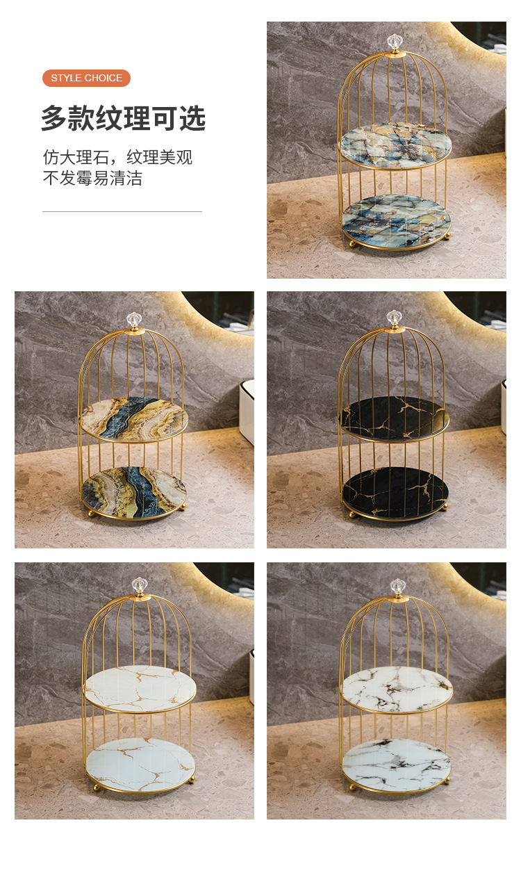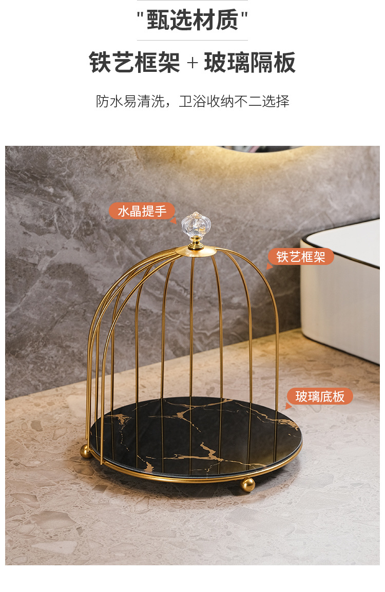 商品属性 [专利] 否 [主要下游平台] 亚马逊 [主要销售地区] 北美 [产品上市时间] 2021 [功能] 多用途,可旋转,可移动,防尘,防潮 [安装方式] 桌面式 [层数] 2层 [收纳场景] 化妆收纳,厨房收纳,桌面收纳,卧室收纳,卫浴收纳,客厅收纳 [是否跨境出口专供货源] 是 [是否进口] 否 [有可授权的自有品牌] 否 [材质] 铁艺 [款式] 鸟笼收纳架 [箱装数量] 1 [类别] 收纳架,置物架,整理架 [贸易属性] 外贸,内贸,内贸+外贸 [风格] 欧式