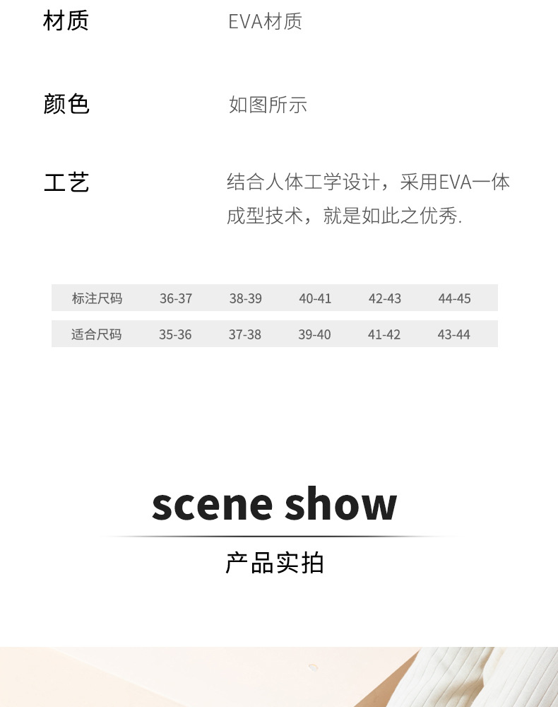 商品属性 [上市年份季节(上市时间)] 2025年春季 [功能] 透气,防滑,耐磨 [厚薄] 普通厚 [库存类型] 整单 [拖鞋种类] 套趾拖鞋 [是否包跟] 否 [是否外贸] 否 [是否带USB] 否 [是否库存] 是 [是否跨境出口专供货源] 否 [最快出货时间] 2 [最晚发货时间] 3天 [款式] 一字拖 [流行元素] 其他 [货源类别] 现货 [质检单位] sgs [质检报告] 否 [适用人群类型] 情侣 [适用性别] 中性/男女均可 [鞋底厚度] 1.5cm(含)-3.5cm(不含) [鞋底工艺] 注塑鞋 [鞋底材质] EVA [鞋面材质] EVA [风格] 日常休闲
