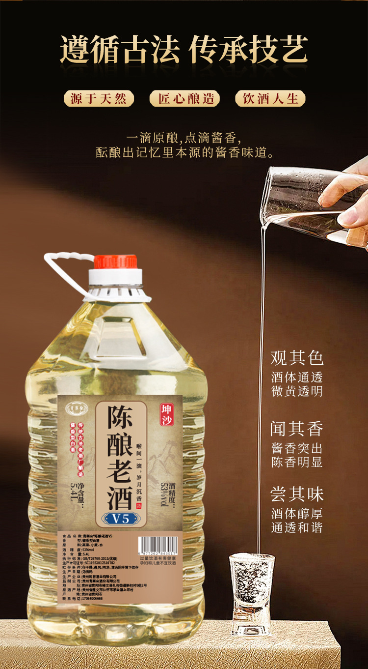 商品属性 [OEM] 否 [保质期] 999 [储存条件] 常温 [储藏方法] 密封 [净重(规格)] 5400ml [包装方式] 桶装 [原产地] 贵州 [原料与配料] 高粱,小麦,水 [商品条形码] 见包装 [度数] 53° [批发] 一件代发 [是否礼盒装] 否 [是否进口] 否 [热卖月份] 全年 [生产厂家] 贵州筑音酒业有限公司公司 [生产日期] 见包装 [生产许可证编号] SC11552012310782