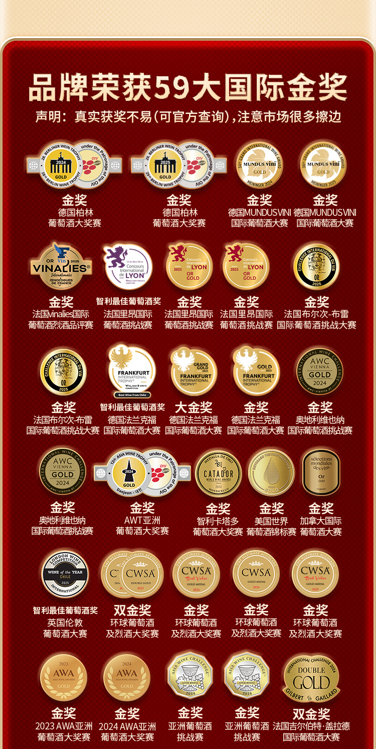 商品属性 [产品标准号] 7808731405568 [产品类别] 红葡萄酒 [保质期] 15 [储存条件] 常温 [储藏方法] 13-22°C,平放阴凉避光 [净重(规格)] 750 [制作工艺] 智利手工采摘酿制 [包装方式] 瓶装 [原产国/地区] 智利 [原料与配料] 具体咨询客服 [商品条形码] 7808731405568 [年份] 葡萄酒年份更新快,以实际出库年份为主,具体可以咨询客服 [是否礼盒装] 是 [是否进口] 是 [生产厂家] AOYO WINES SPA [等级] 精选级 [葡萄品种] 赤霞珠 [进口类型] 原瓶进口 [酒精含量] 13.5