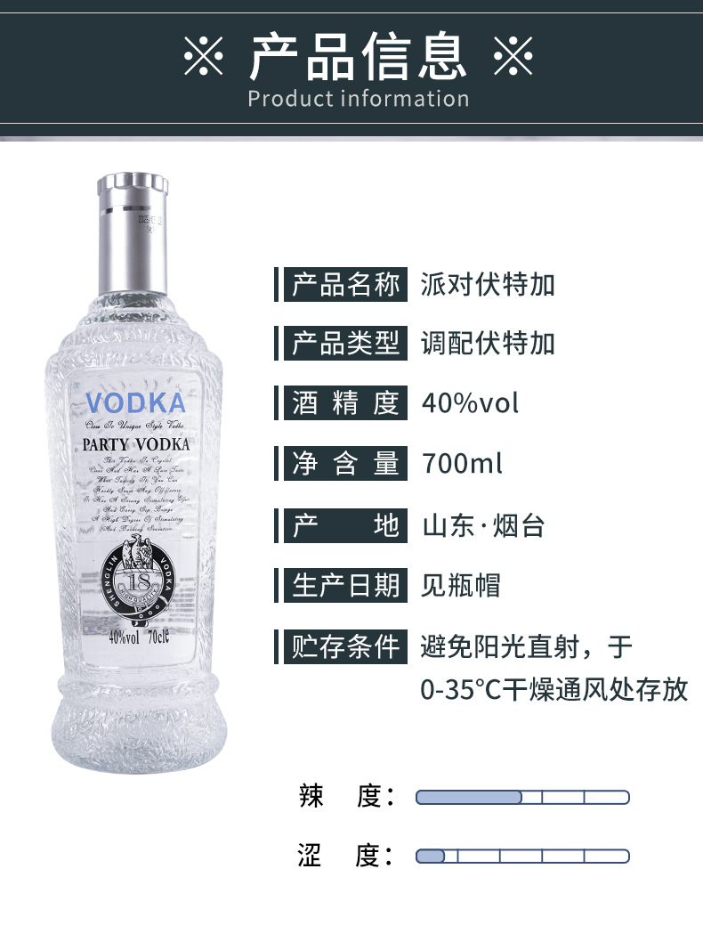商品属性 [产品类别] 白兰地 [储存条件] 常温 [储藏方法] 阴凉干燥 [净重(规格)] 700 [包装方式] 瓶装 [原产地] 山东 [原料与配料] 见包装 [商品条形码] 624189301768 [是否礼盒装] 否 [是否进口] 否 [热卖月份] 全年 [特产] 否 [生产日期] 见包装5 [生产许可证编号] SC11537068401513 [酒精度] 40 [酒龄] 5