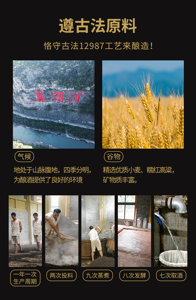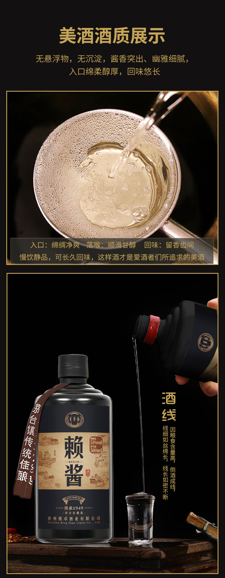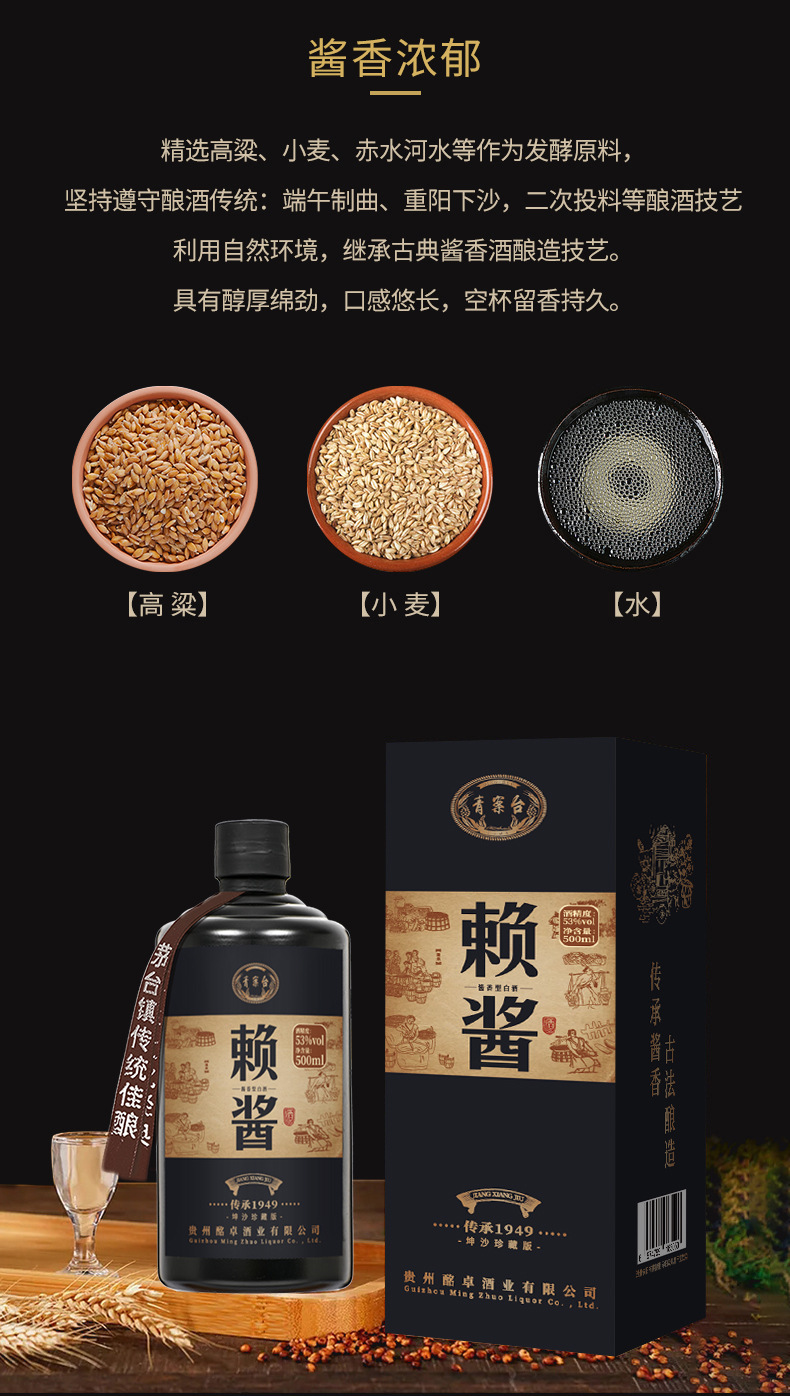 商品属性 [OEM] 是 [代发] 一件代发 [保质期] 99 [储存条件] 常温 [储藏方法] 密封 [净重(规格)] 500 [包装方式] 礼盒装 [原产地] 贵州 [原料与配料] 高粱,小麦,水 [商品条形码] 见包装 [度数] 53 [是否礼盒装] 是 [是否进口] 否 [热卖月份] 全年 [生产厂家] 筑音 [生产日期] 见包装 [生产许可证编号] SC11552012310782
