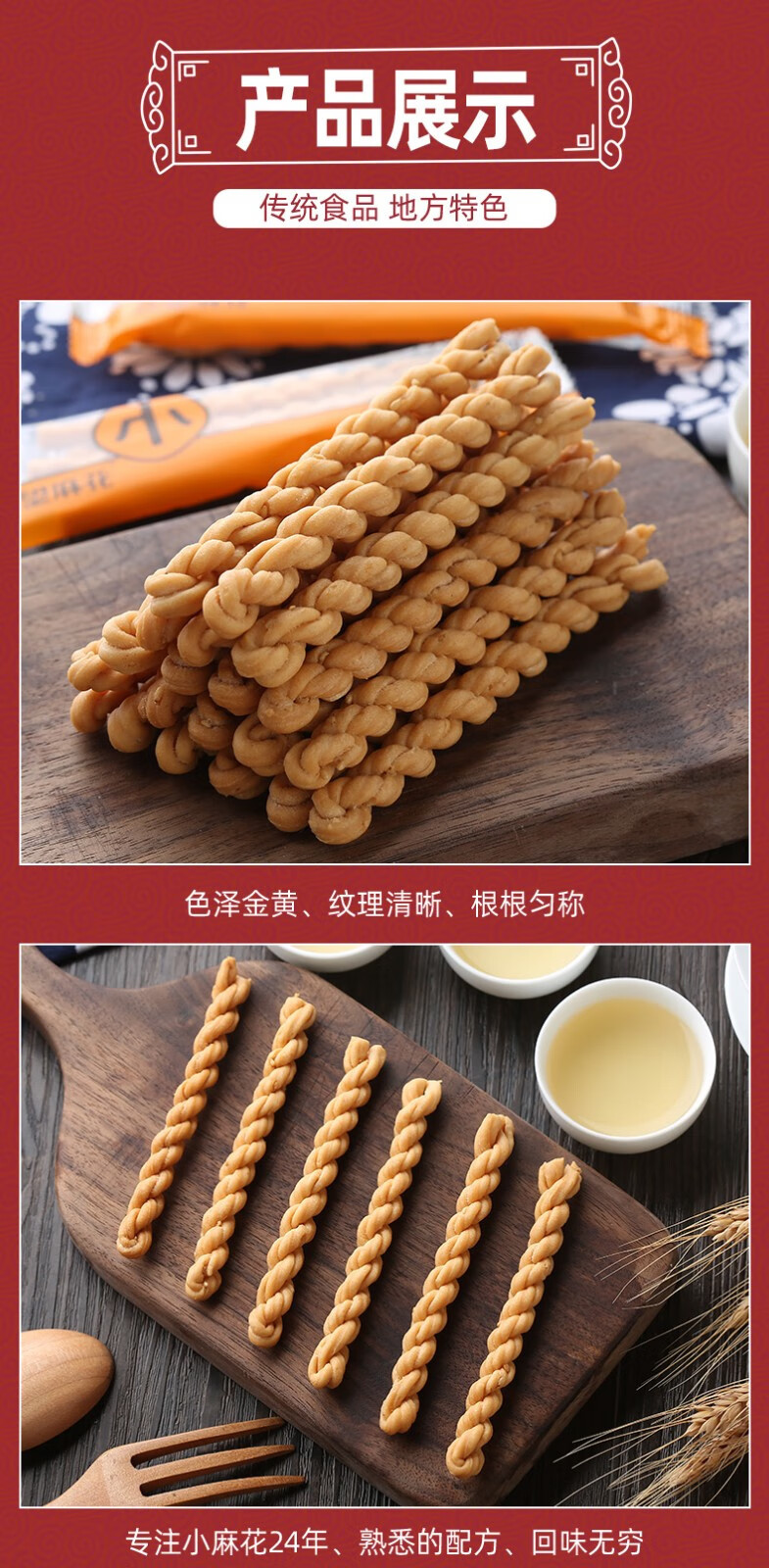商品属性 [产品类别] 麻花 [储存条件] 常温 [商品条形码] 6922895407013 [是否进口] 否 [热卖月份] 全年 [生产许可证编号] SC12442122300101