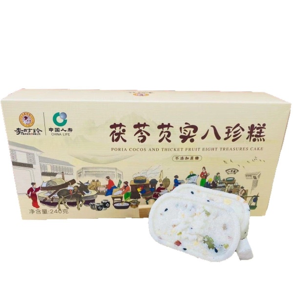 商品属性 [产品标准号] - [产品类别] 八珍糕 [产品认证] 否 [保质期] 120天 [储存条件] 常温 [储藏方法] 密封 [净含量(规格)] 240g [制作工艺] - [包装方式] 餐饮制售 [包装系列] 简装系列 [原产地] 浙江 [原料与配料] 八珍糕 [售卖方式] 包装 [商品条形码] - [是否含糖] 不添加蔗糖 [是否进口] 否 [热卖月份] 全年 [特产品类] 糕点 [特殊功效] 养胃 [特殊提货凭证] 短信编码提货 [生产厂家] 见包装 [生产日期] 见包装 [生产许可证编号] SC10734166031638 [等级] -