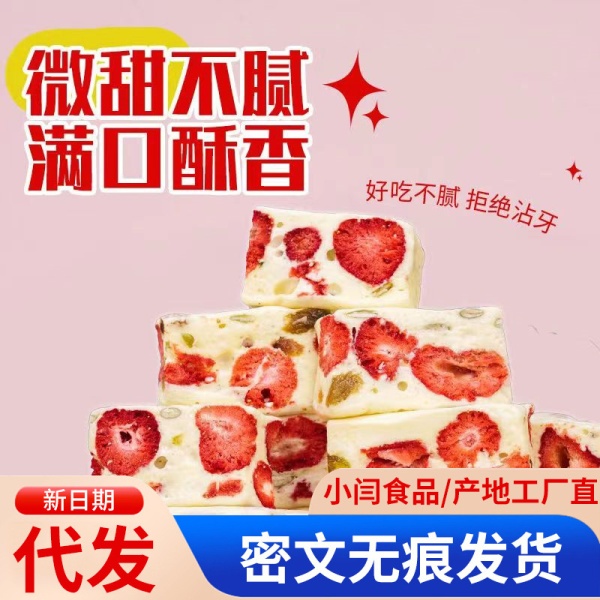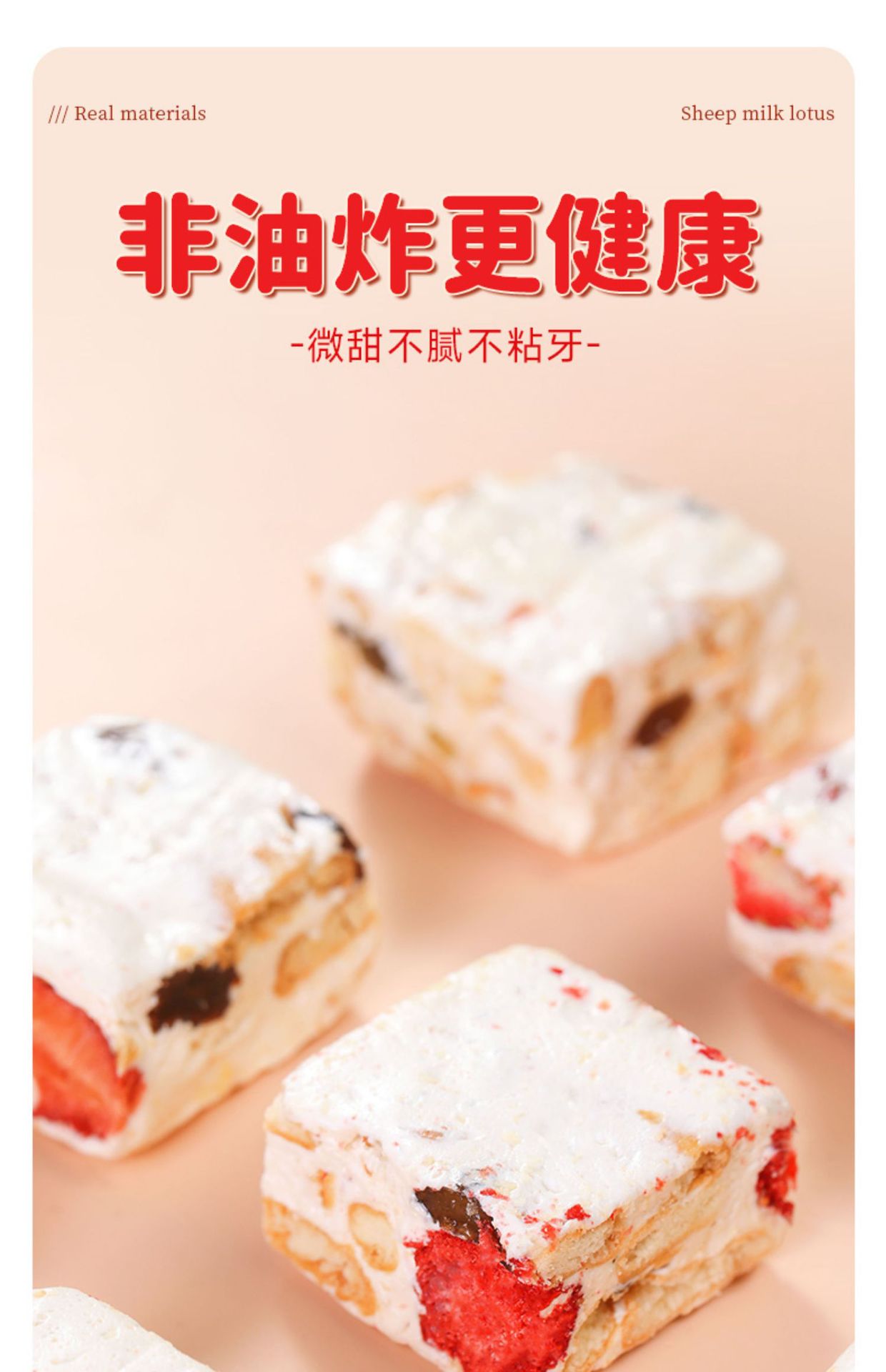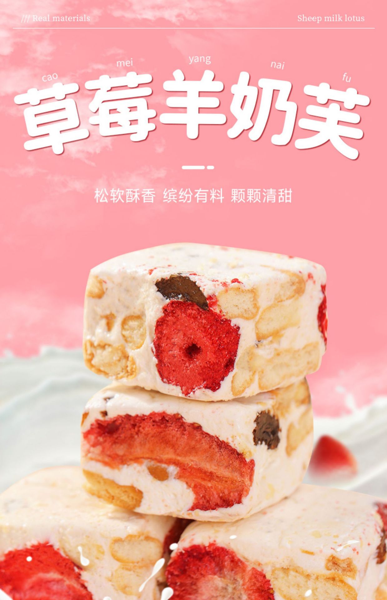 商品属性 [产品标准号] *** [产品类别] 草莓羊奶奶芙 [保质期] 见包装 [储存条件] 常温 [储藏方法] 见包装 [净含量(规格)] 500g [包装方式] 预包装 [包装系列] 按需定制系列 [原产地] 河北 [原料与配料] 见包装 [名称1] 网红草莓羊奶芙大块 [名称2] 草莓羊奶芙冻干零食 [名称3] 正宗草莓羊奶芙 [售卖方式] 见包装 [商品条形码] *** [是否含糖] 含糖 [是否进口] 否 [热卖月份] 全年 [特产品类] 其它 [特殊功效] 其他 [生产厂家] 见包装 [生产日期] 见包装 [生产许可证编号] SC11713092100847 [等级] 一级