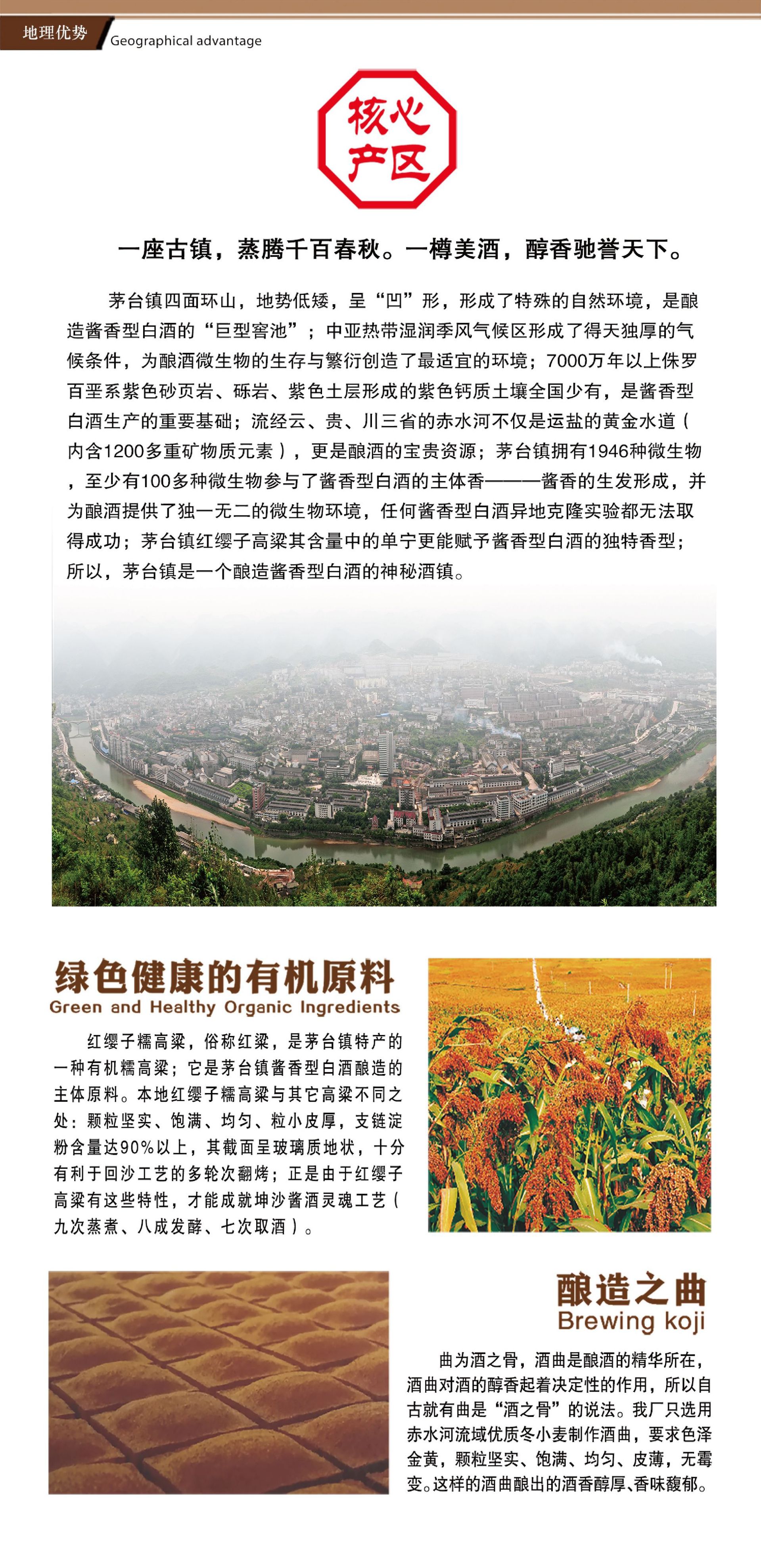 商品属性 [OEM] 否 [保质期] 长期 [储存条件] 常温 [储藏方法] 干燥、通风、常温下贮存 [净重(规格)] 500 [制作工艺] 12987 [包装方式] 瓶装 [原产地] 贵州 [原料与配料] 高粱、小麦、水 [商品条形码] 6973776410325 [度数] 53 [是否礼盒装] 否 [是否进口] 否 [热卖月份] 全年 [生产许可证编号] SC11552038214699
