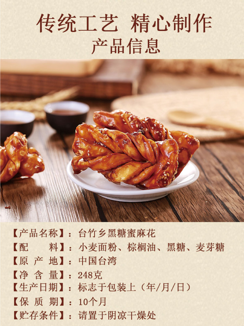 台竹乡黑糖蜜麻花248g(内含8小包)