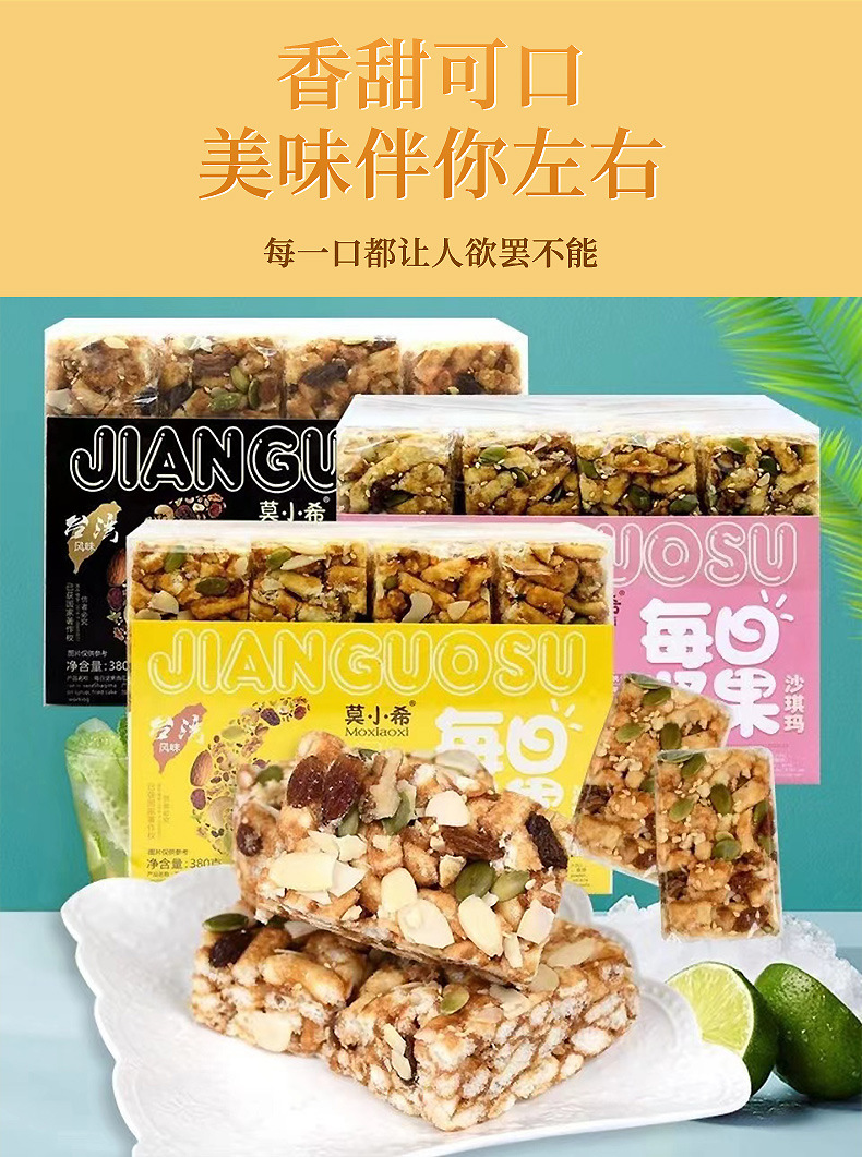 商品属性 [产品标准号] 见包装 [产品类别] 沙琪玛 [保质期] 9个月 [储存条件] 常温 [储藏方法] 常温储存 [净含量(规格)] 380g [制作工艺] 上糖浆类油炸糕点 [包装系列] 简装系列 [原产地] 江苏 [原料与配料] 小麦粉 麦芽糖浆等 [售卖方式] 批发代发 [商品条形码] 见包装 [是否含糖] 含糖 [是否进口] 否 [热卖月份] 全年 [生产厂家] 江苏好的食品有限公司 [生产日期] 2024年4月 [生产许可证编号] SC12432032302616 [等级] 见包装