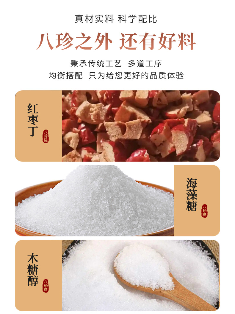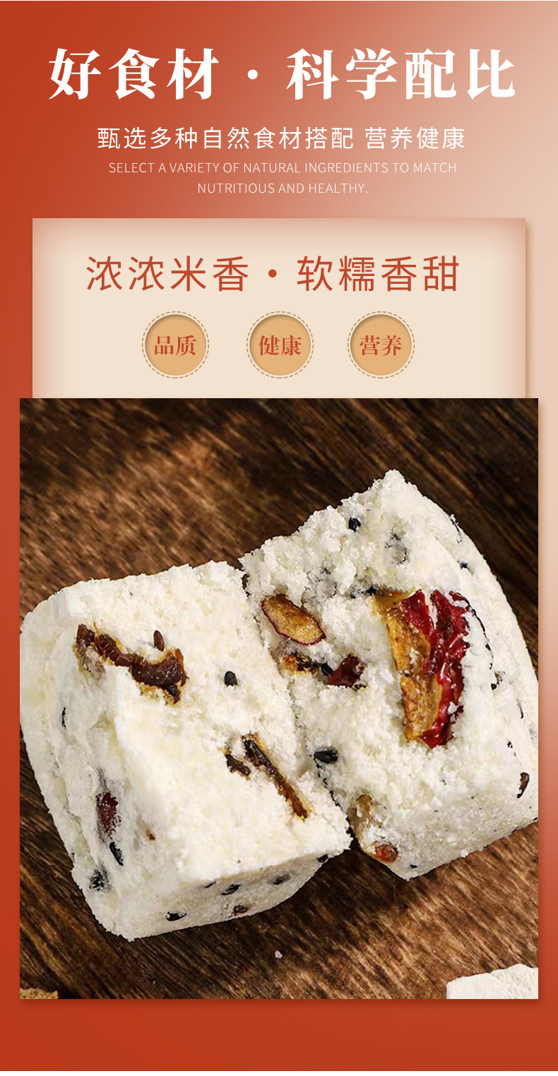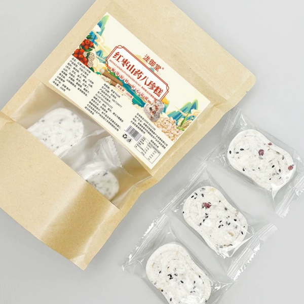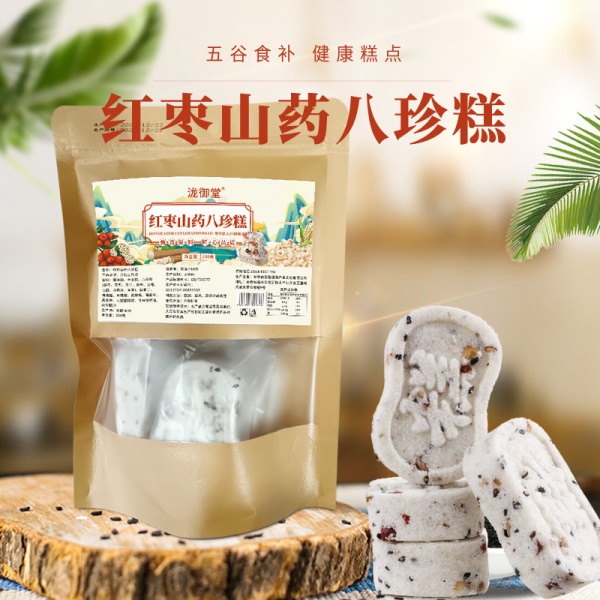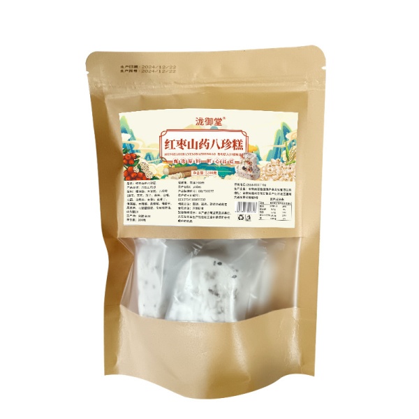 商品属性 [产品类别] 冷加工糕点 [保质期] 60天 [储存条件] 冷藏 [净含量(规格)] 200克 [原产地] 安徽亳州 [原料与配料] 糯米粉.大米粉.八珍粉.(茯苓.芡实.莲子.薏米.山楂.等 [是否进口] 否 [热卖月份] 全年 [特产品类] 其它 [生产厂家] 安徽百草趣健康产业发展有限公司 [生产日期] 见包装喷码 [生产许可证编号] SC10734166031332