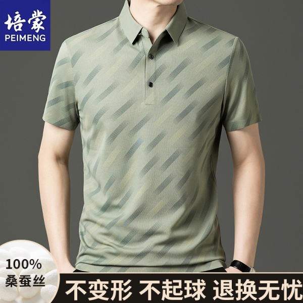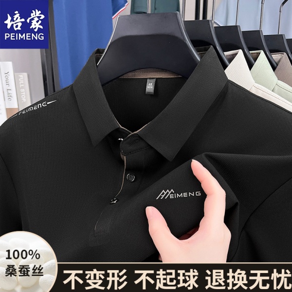 商品属性 [上市年份/季节] 2025夏季 [主面料成分] 桑蚕丝 [主面料成分的含量] 96%及以上 [厚薄] 普通 [原创设计货源] 否 [图案] 纯色 [库存类型] 整单 [是否跨境出口专供货源] 否 [有无质检报告] 否 [服装款式细节] 嵌花 [材质功能] 透气,可机洗,色牢度高 [淘货类别] 商务绅士(35岁以上) [版型] 合体型 [特殊工艺] 刺绣/绣花 [袖长] 短袖 [货源类别] 现货 [质检报告编号] 0 [适合季节] 夏季 [适用场景] 日常 [面料名称] 真丝 [风格] 商务通勤