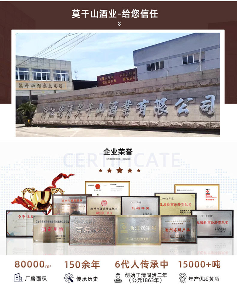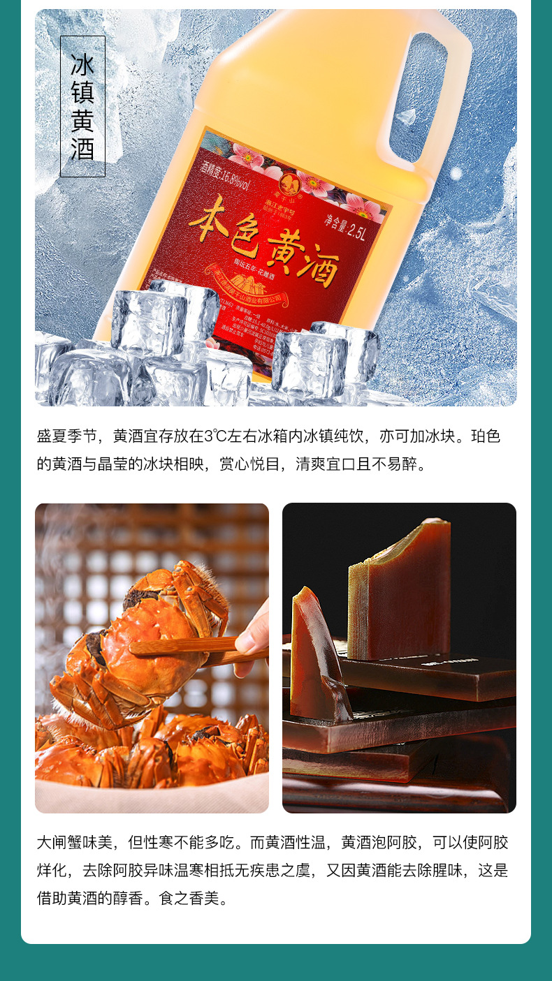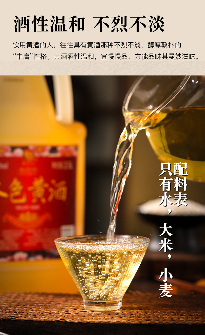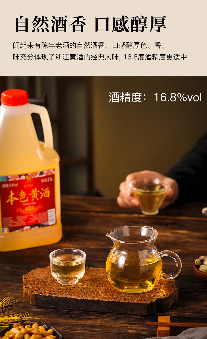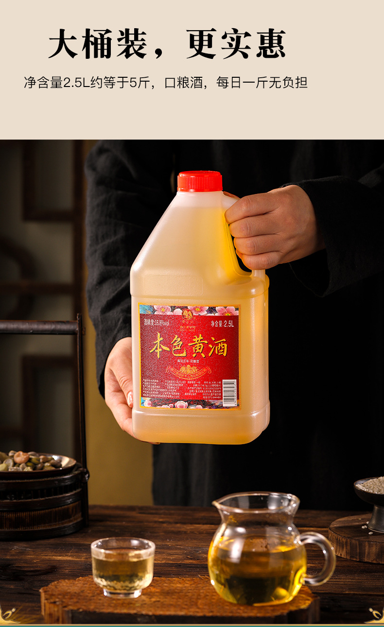 商品属性 [产品标准号] GBT13662 [产品类别] 花雕酒 [产品认证] 否 [保质期] 3年 [储存条件] 常温 [储藏方法] 阴凉干燥 [净重(规格)] 2.5L [制作工艺] 发酵酒 [包装方式] 桶装 [原产地] 浙江 [原料与配料] 大米黄酒 [商品条形码] 6925954282651 [是否礼盒装] 否 [是否进口] 否 [热卖月份] 全年 [特产] 是 [生产厂家] 浙江德清莫干山酒业有限公司 [生产日期] 2025年 [生产许可证编号] SC10333052103078