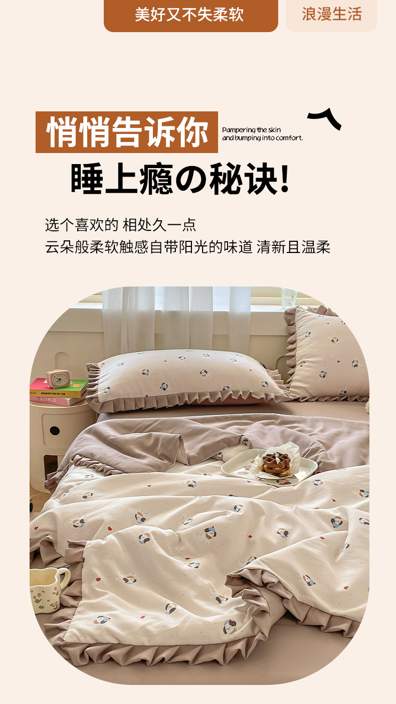 商品属性 [加工定制] 否 [印染工艺] 活性印染 [图案] -1 [是否一般纳税人] 否 [材质] 水洗棉 [款式] 床单式 [织造工艺] 印花 [风格] ins风