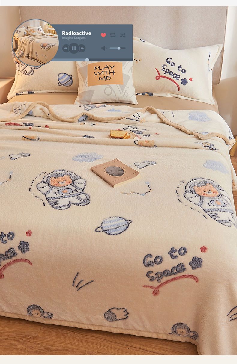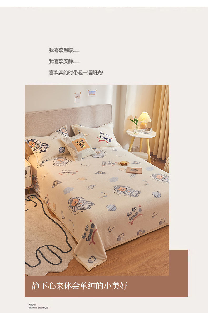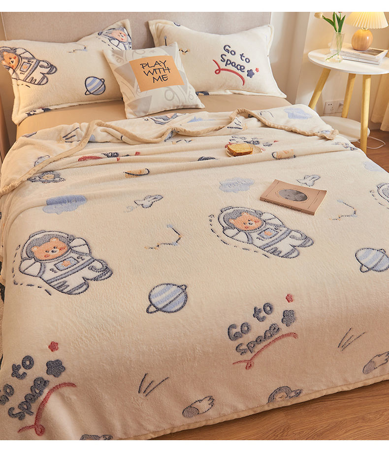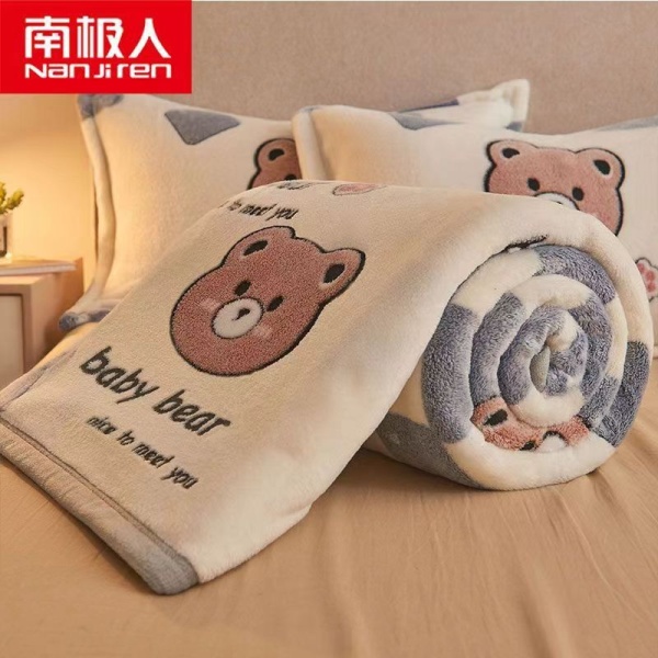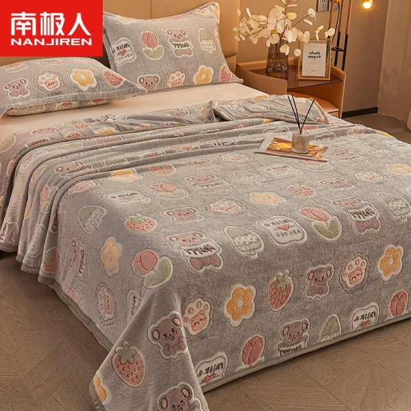 商品属性 [克重] 1000g(含)~1500g(不含) [加工定制] 否 [图案] 卡通动漫 [床尺寸] 180x200cm [是否一般纳税人] 是 [材质] 聚酯纤维(涤纶) [毯类型] 雪花绒毯 [适用季节] 四季通用 [风格] 卡通
