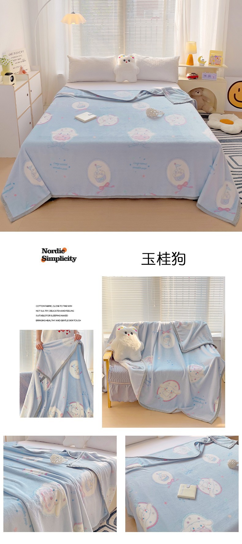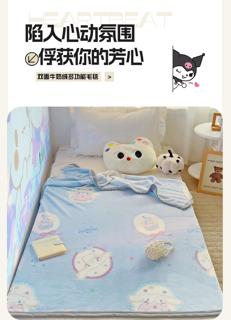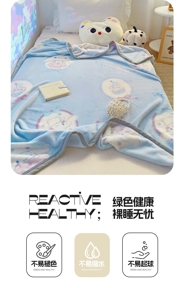 商品属性 [克重] 800g(含)~1000g(不含) [加工定制] 是 [图案] 卡通动漫 [是否一般纳税人] 否 [材质] 聚酯纤维(涤纶) [毯类型] 牛奶绒毯 [适用季节] 四季通用 [风格] 卡通