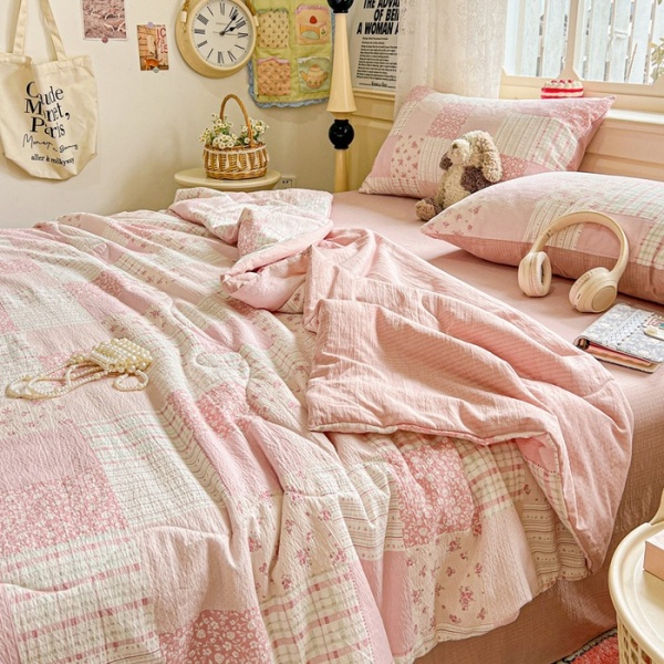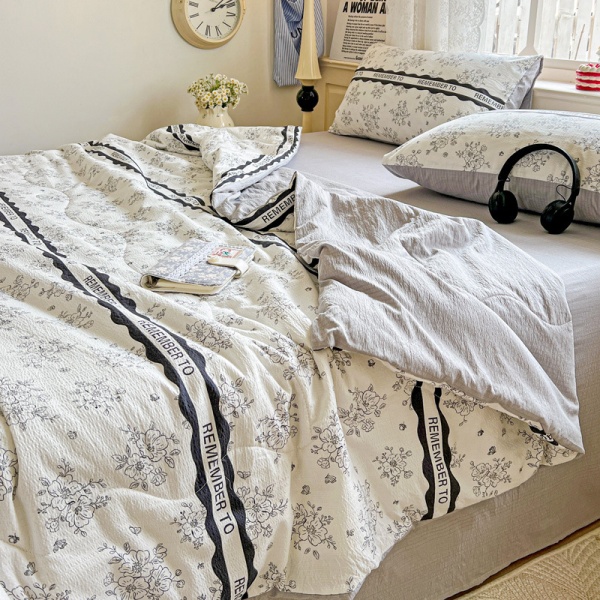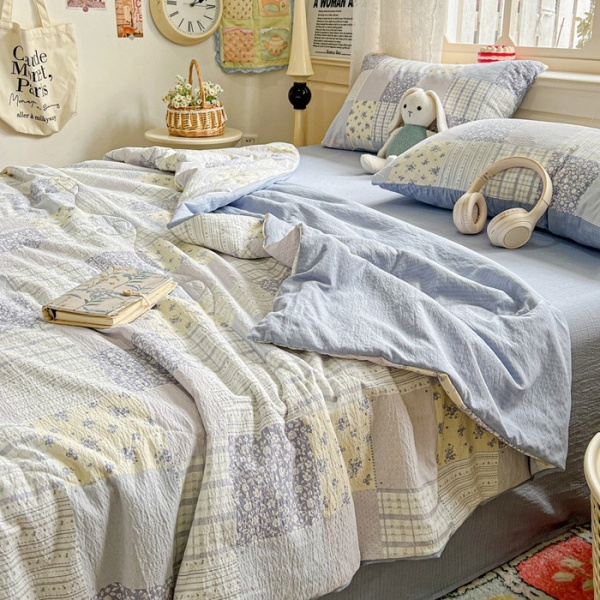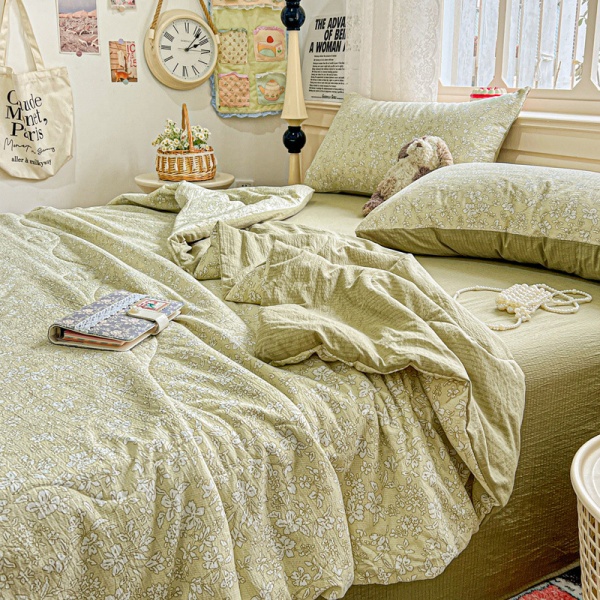 商品属性 [克重] 500g(不含)以下 [加工定制] 是 [印染工艺] 数码印花 [图案] 植物花卉 [是否一般纳税人] 是 [材质] 涤棉混纺 [款式] 床单式 [织造工艺] 绗缝 [风格] 小清新