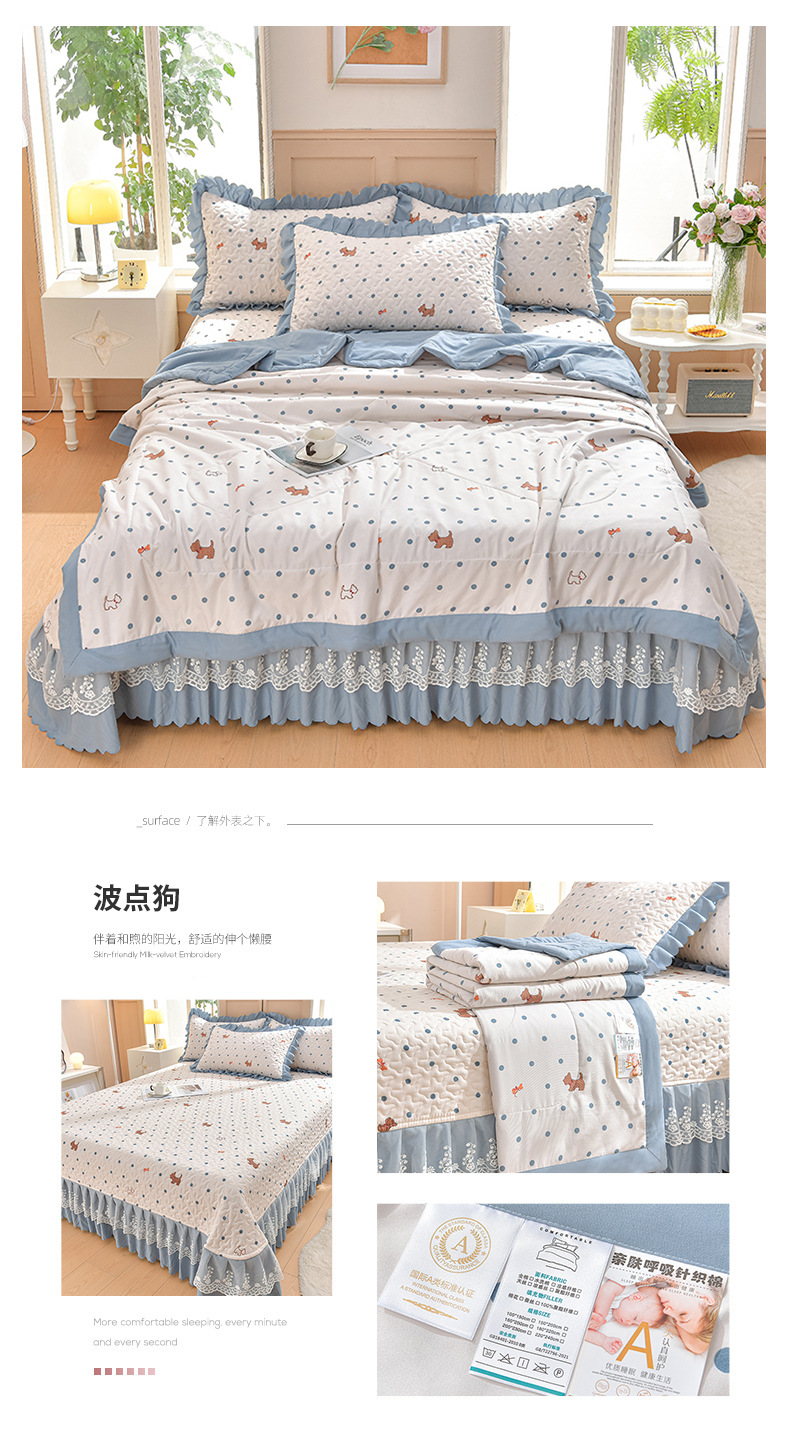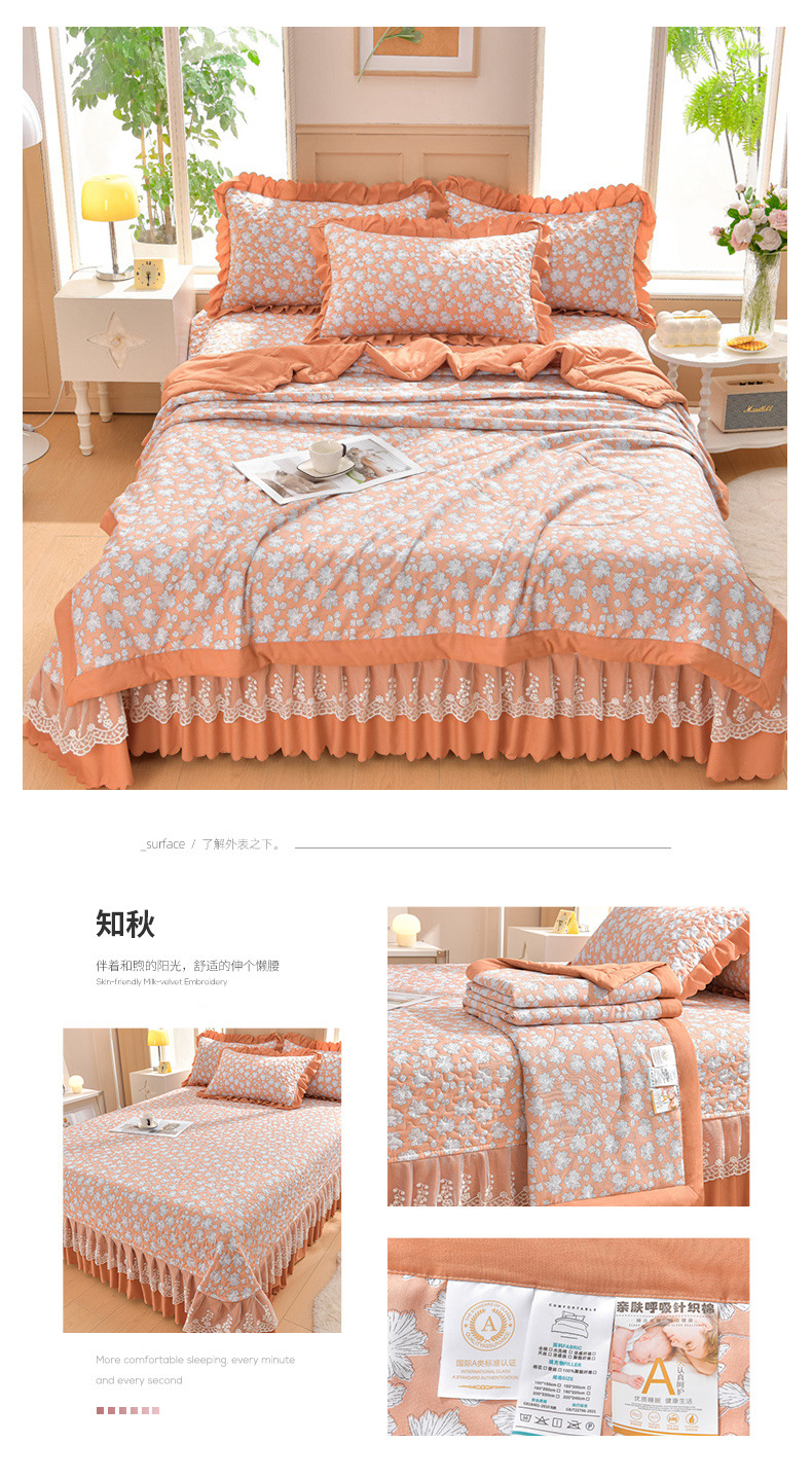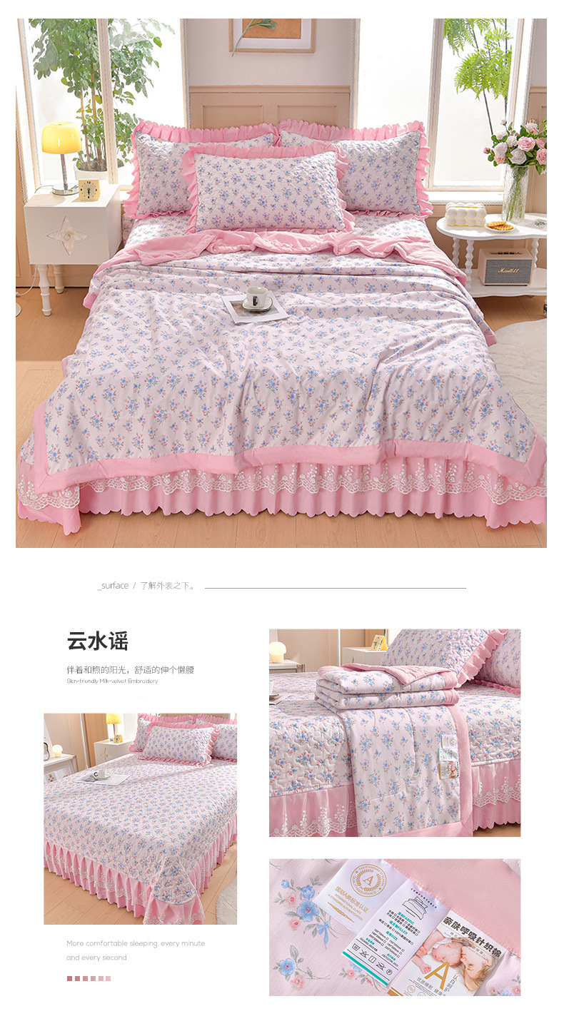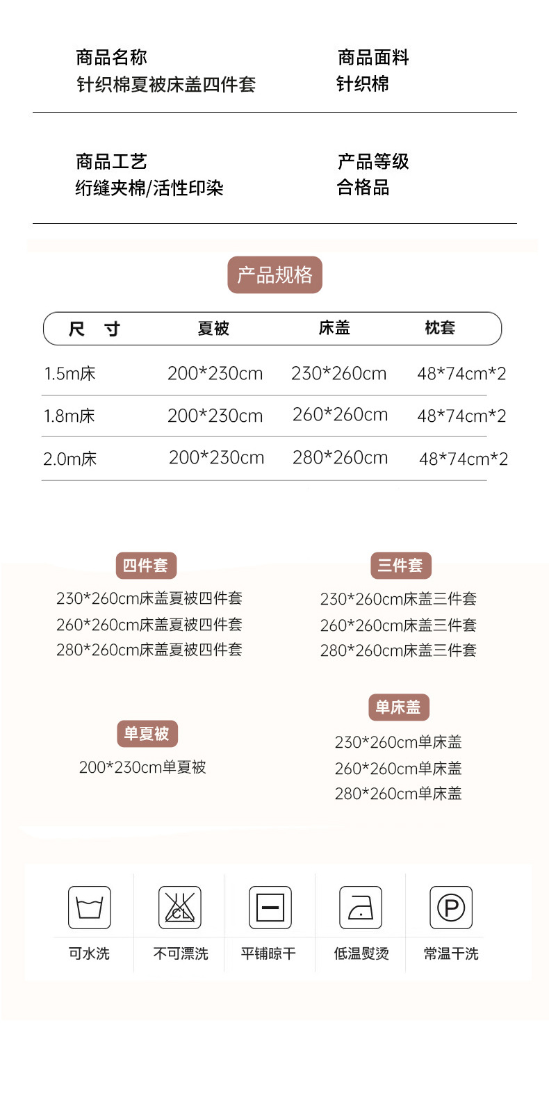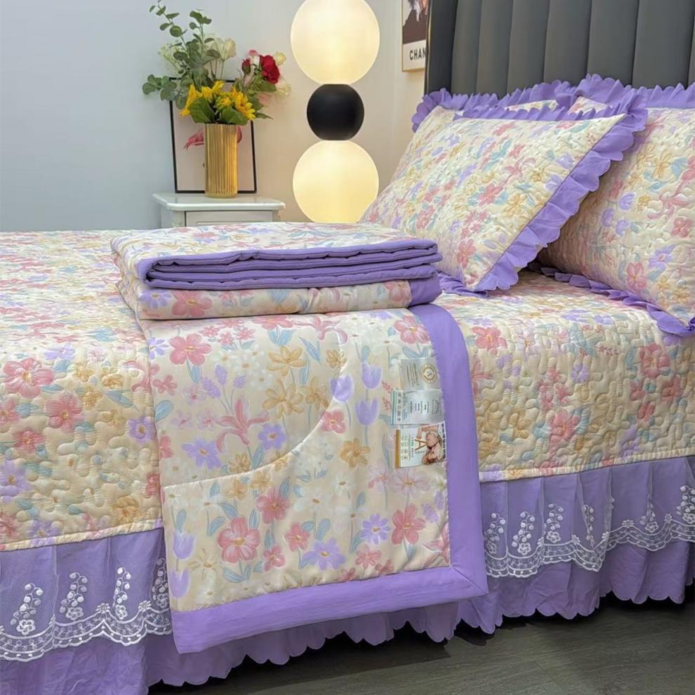 商品属性 [印染工艺] 活性印染 [图案] 其他 [是否一般纳税人] 否 [材质] 水洗棉 [款式] 床盖式 [织造工艺] 绗缝,其他 [风格] 小清新