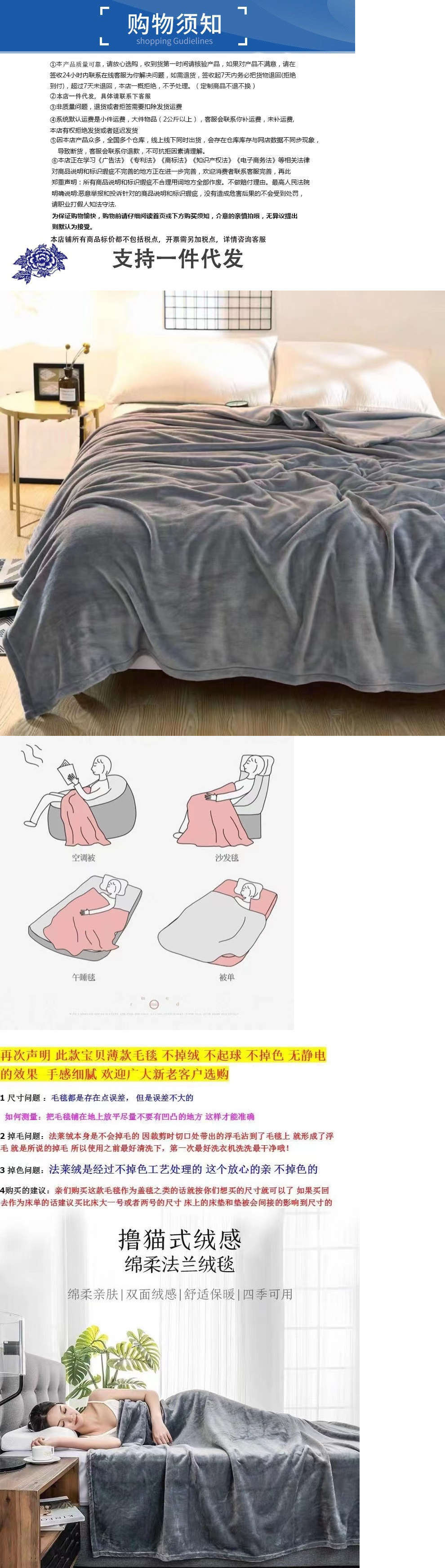 商品属性 [克重] 5000g(含)以上 [加工定制] 否 [图案] 纯色 [是否一般纳税人] 否 [材质] 法兰绒/棉 [毯类型] 法兰绒/棉 [适用季节] 春秋 [风格] 韩版
