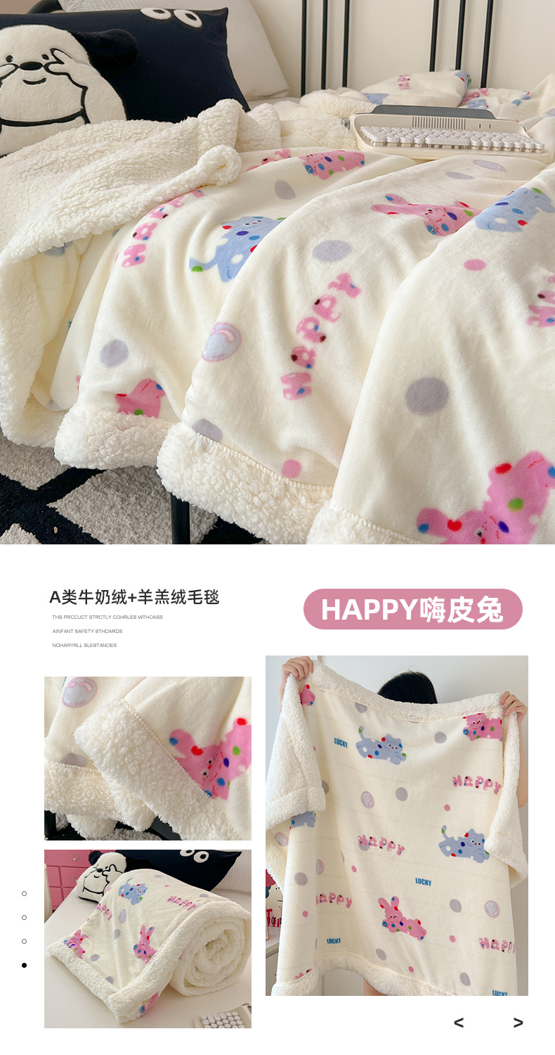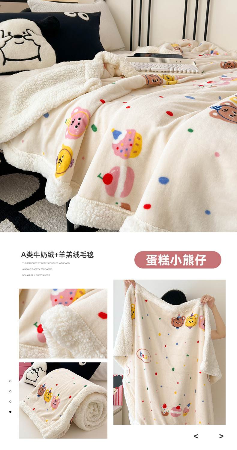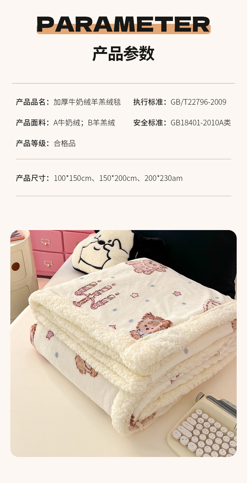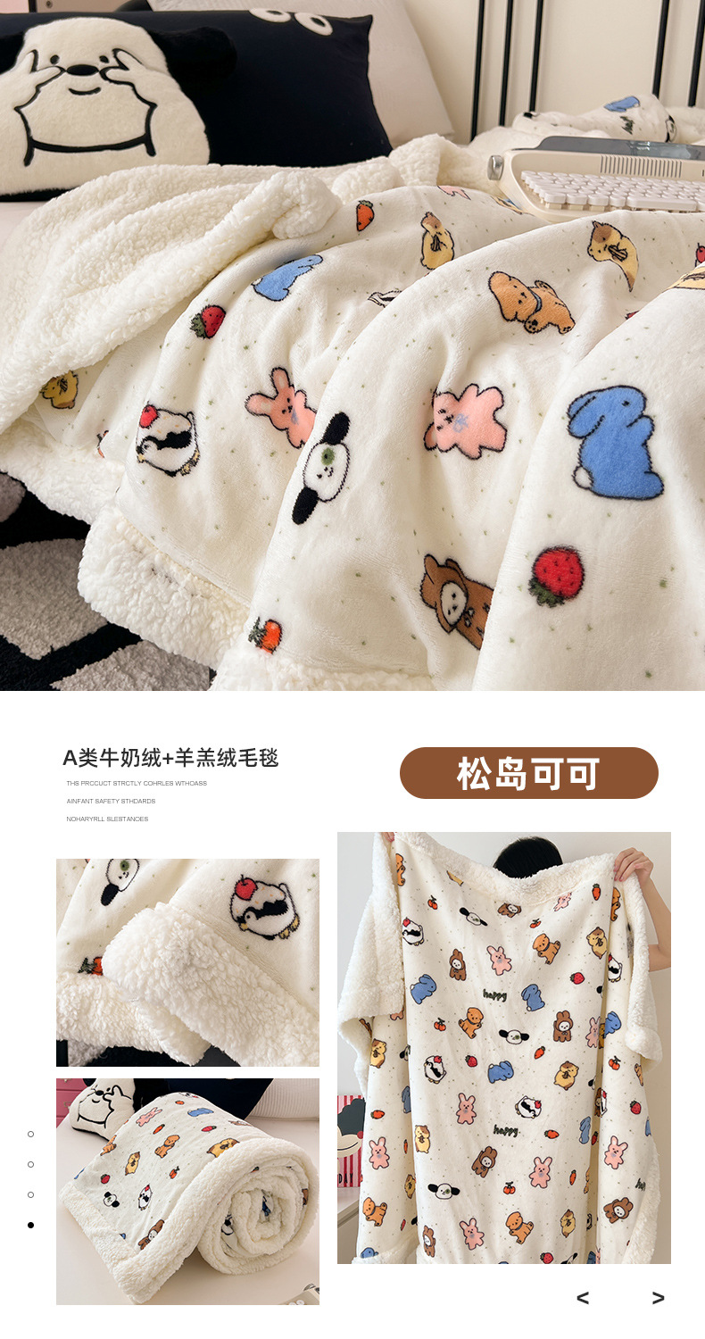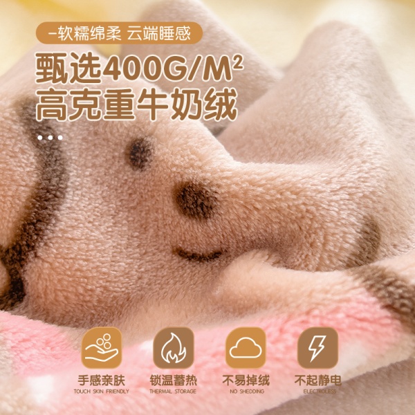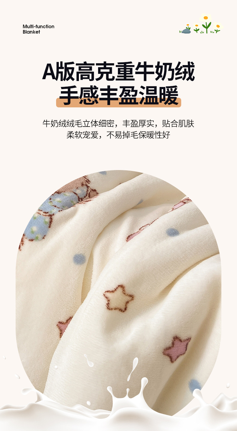 商品属性 [克重] 300g(含)~500g(不含) [加工定制] 否 [图案] 卡通动漫 [是否一般纳税人] 否 [材质] 牛奶绒 [毯类型] 牛奶绒毯 [适用季节] 四季通用 [风格] 卡通