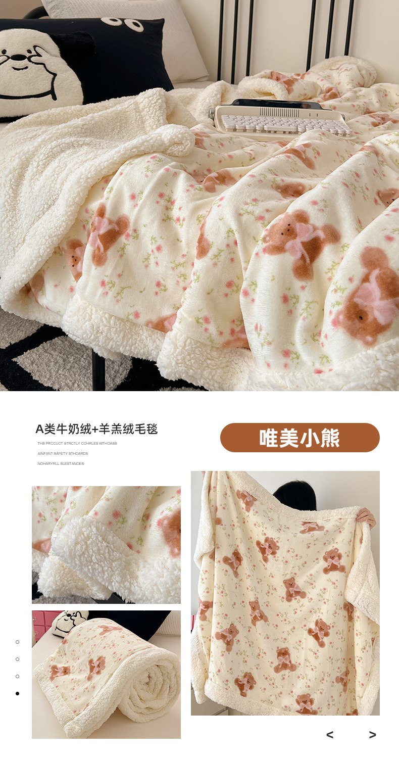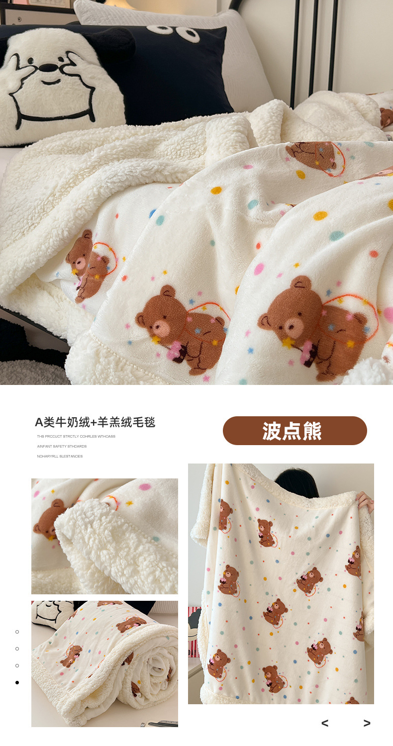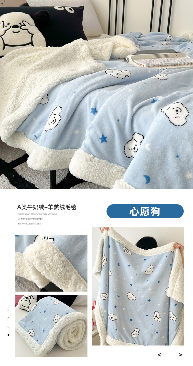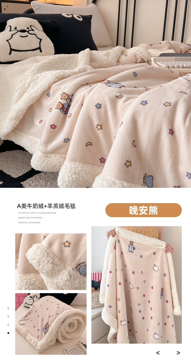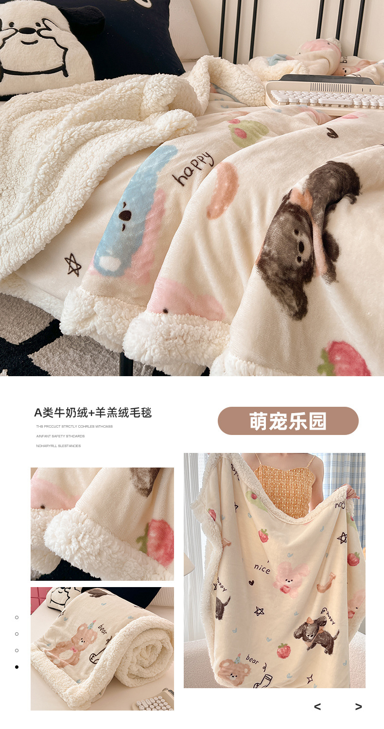 商品属性 [克重] 300g(含)~500g(不含) [加工定制] 否 [图案] 卡通动漫 [是否一般纳税人] 否 [材质] 牛奶绒 [毯类型] 牛奶绒毯 [适用季节] 四季通用 [风格] 卡通
