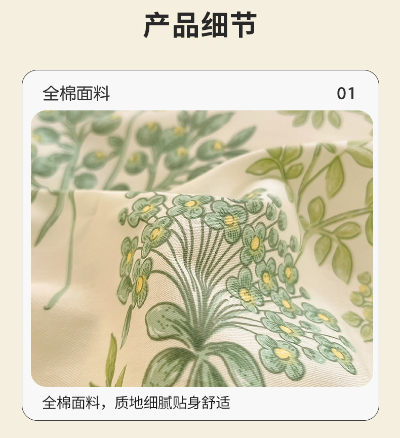 商品属性 [克重] 500g(不含)以下 [加工定制] 是 [印染工艺] 活性印染 [图案] 植物花卉 [是否一般纳税人] 否 [材质] 纯棉 [款式] 床单式 [织造工艺] 其他 [面料密度] 128x68 [面料支数] 40支 [风格] 现代简约