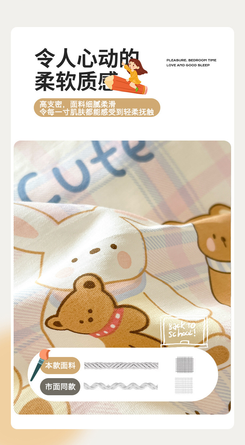 商品属性 [克重] 1000g(含)~1500g(不含) [加工定制] 否 [印染工艺] 活性印染 [图案] 卡通动漫 [是否一般纳税人] 否 [材质] 纯棉 [款式] 床单式 [织造工艺] 印花 [面料密度] 128x68 [面料支数] 40支 [风格] 现代简约