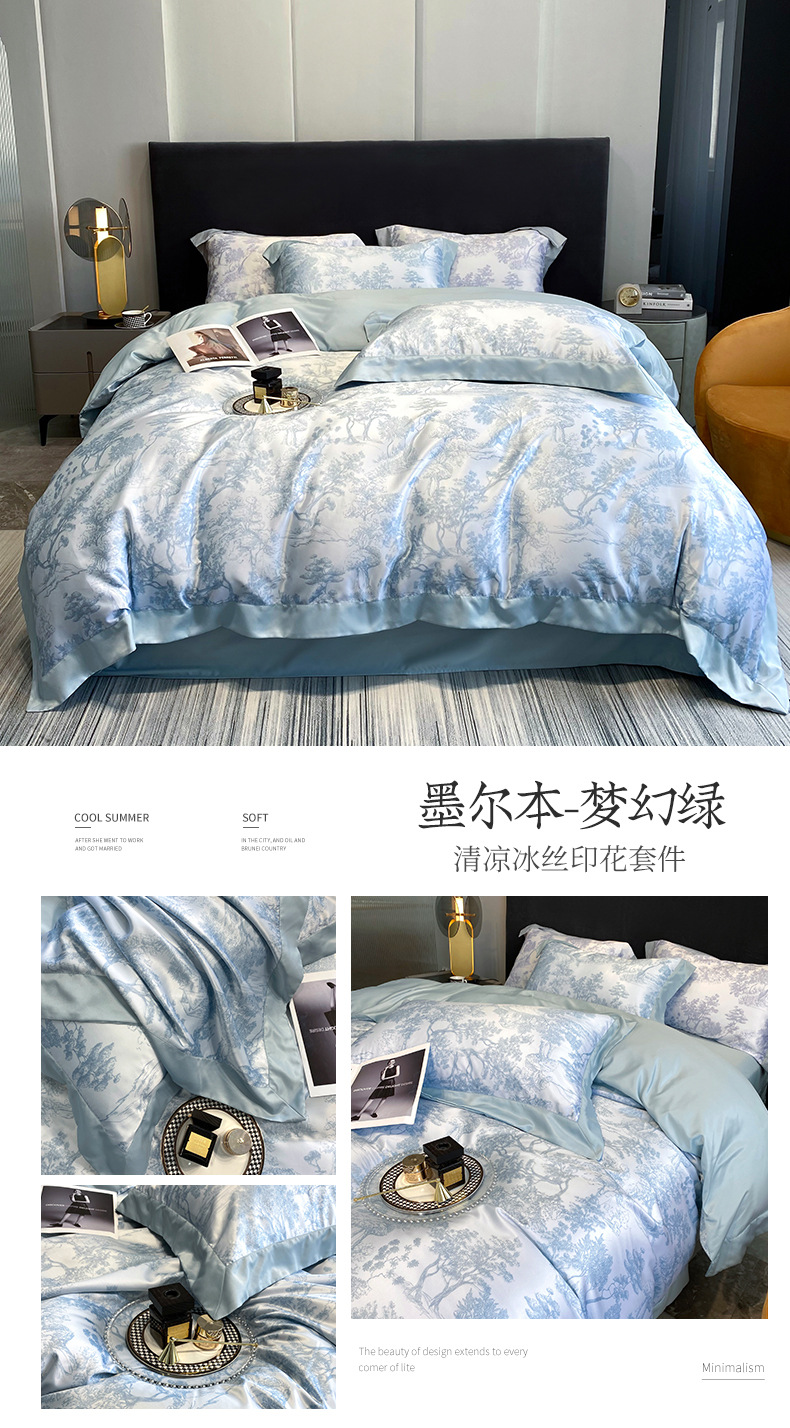 商品属性 [克重] 2500g(含)-3000g(不含) [加工定制] 否 [印染工艺] 活性印染 [图案] 植物花卉 [是否一般纳税人] 否 [材质] 冰丝 [款式] 床单式 [织造工艺] 包边 [风格] 轻奢