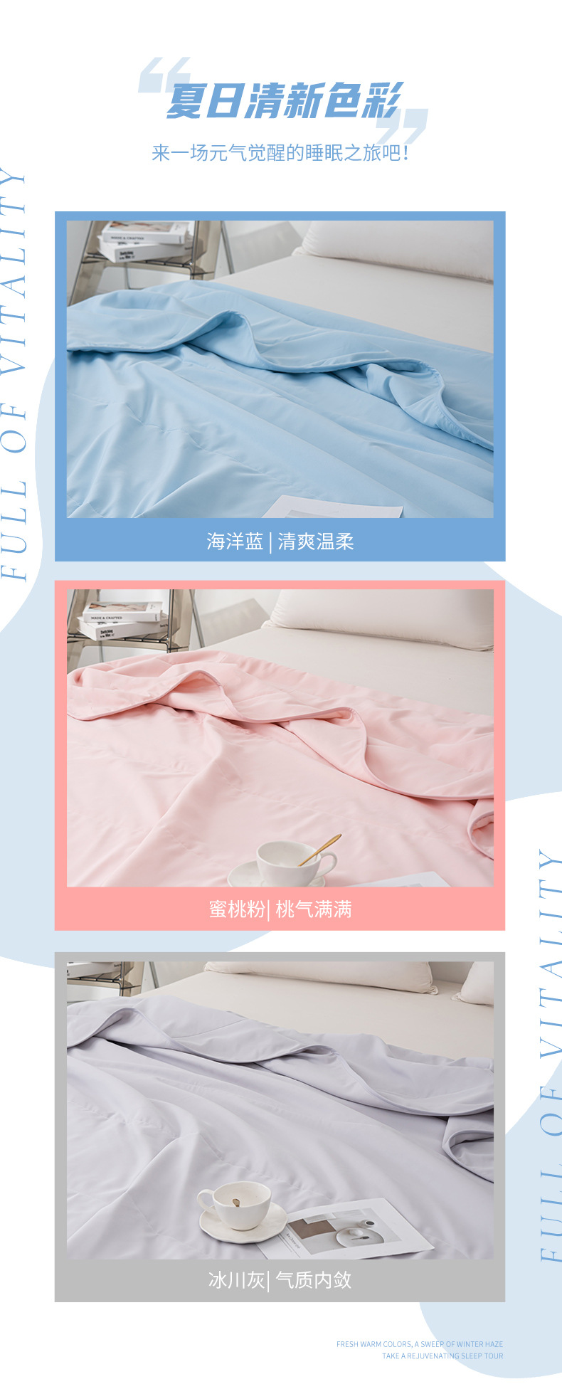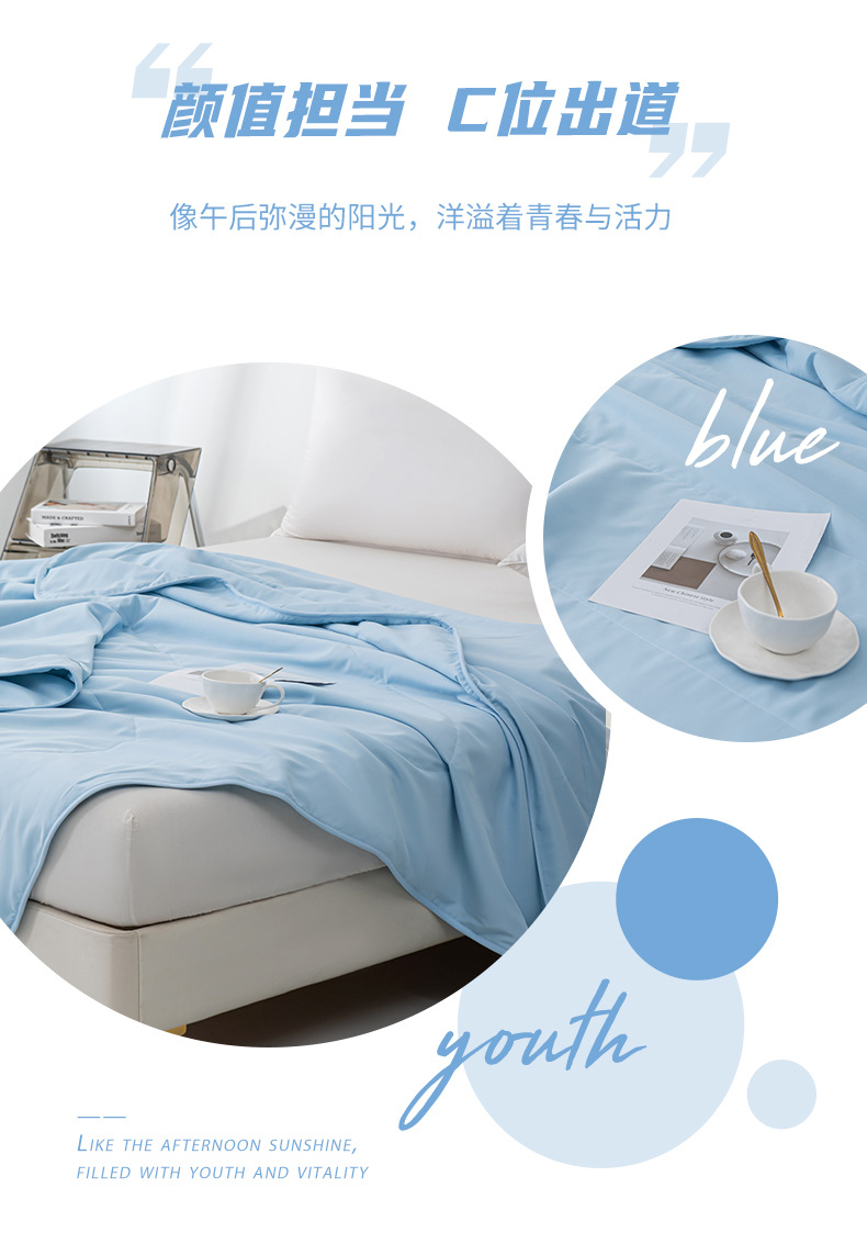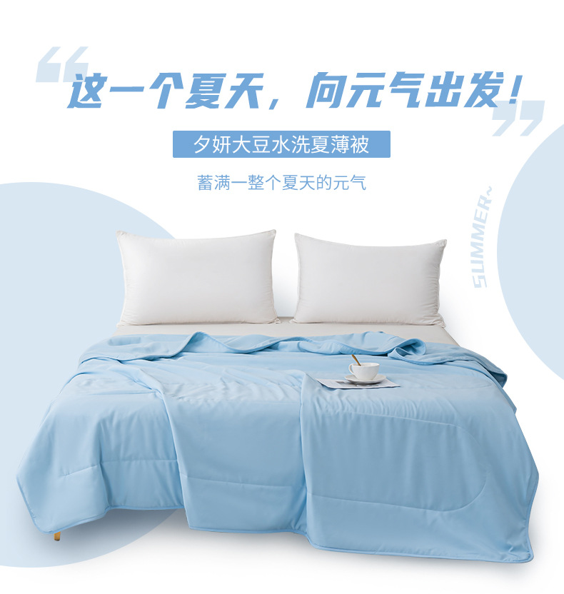 商品属性 [印染工艺] 活性印染 [填充物] 大豆纤维 [是否一般纳税人] 是 [织造工艺] 水洗,印花,斜纹 [被子重量] 1.5斤(不含)-2斤(含) [面料材质] 凉感纤维 [风格] 现代简约